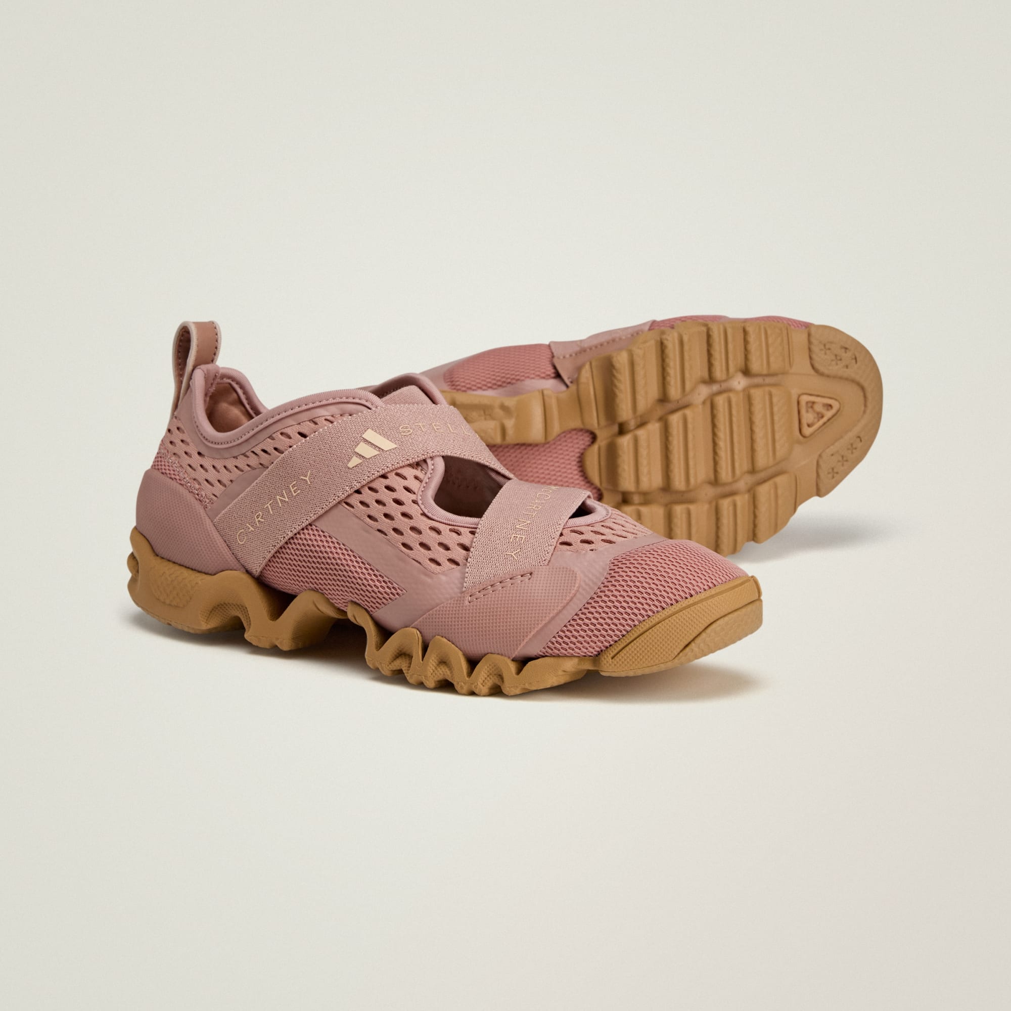 Inspiradas na elegância do ballet, as adidas by Stella McCartney Sportswear X apresentam uma parte superior em estilo bailarina com malha desportiva aberta e uma tira elástica assimétrica para um ajuste confortável.