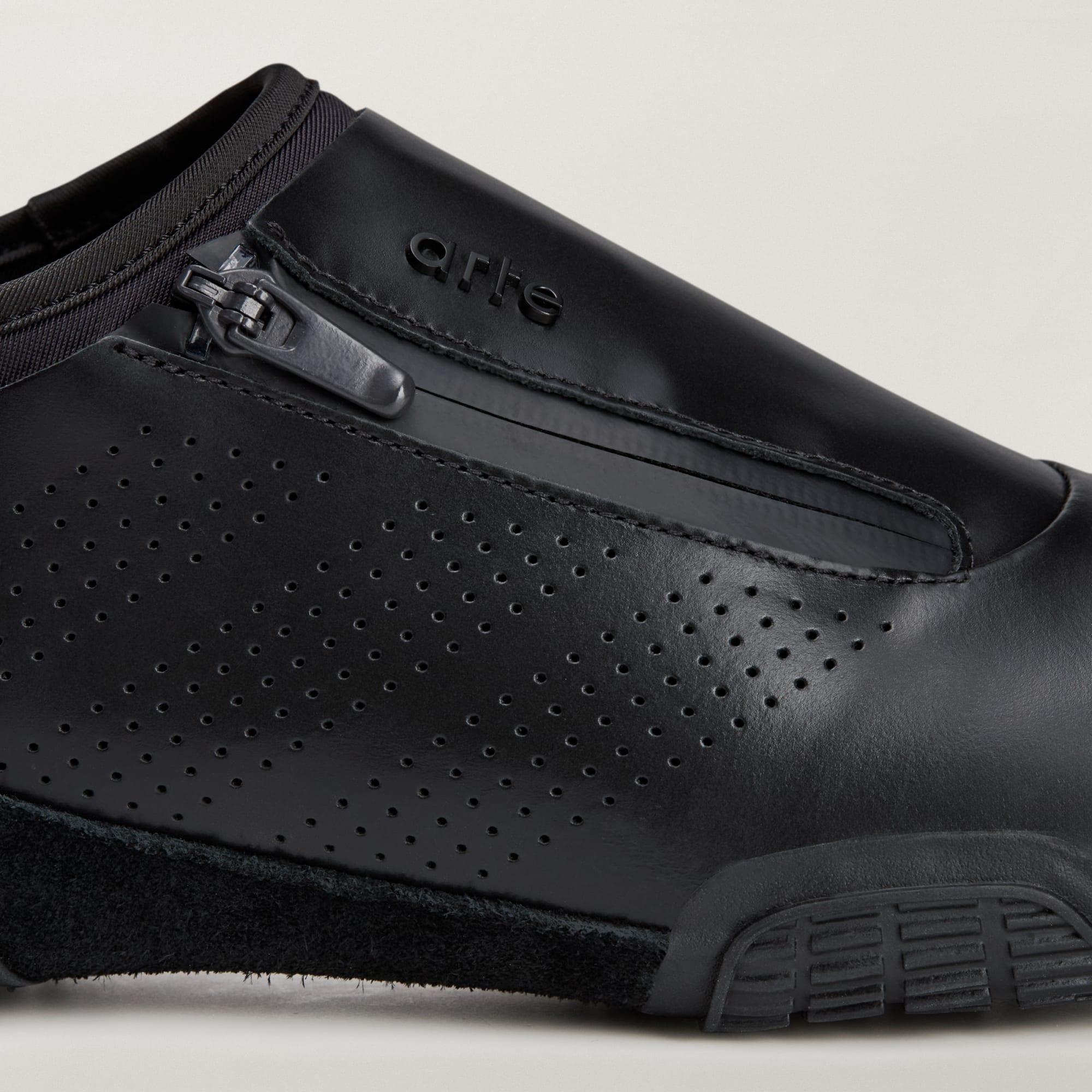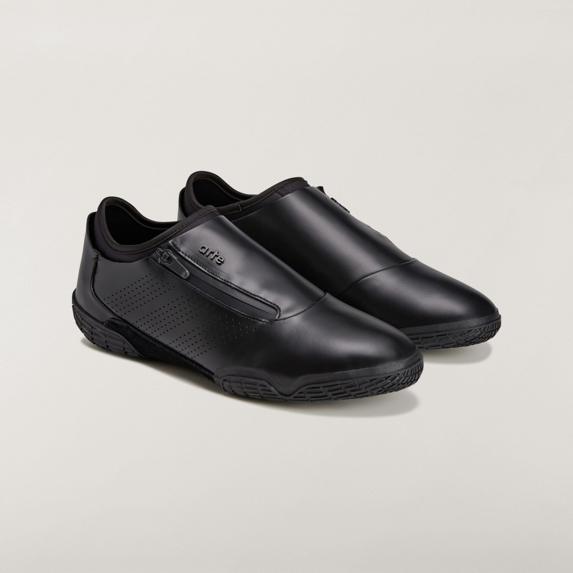 Sapatilhas em pele com fecho de correr lateral para calçar e descalçar facilmente.