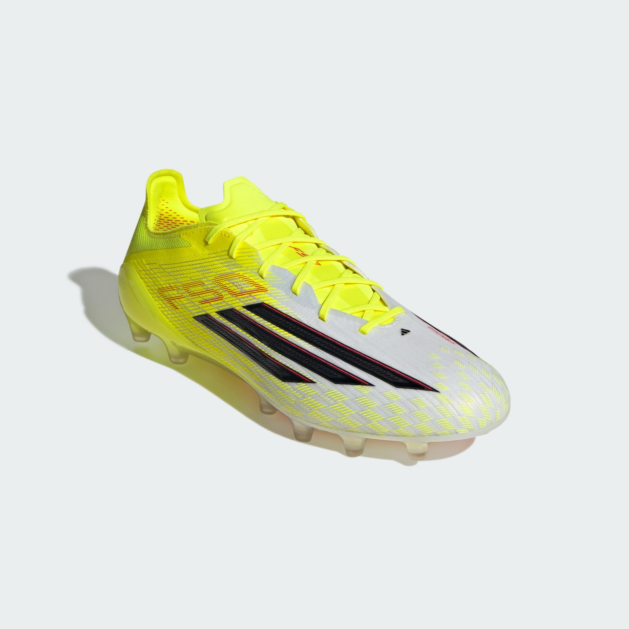 As botas de futebol F50 Elite para piso artificial foram concebidas para aqueles que gostam de ultrapassar os seus limites em campo. Concebidas para uma velocidade e um desempenho revolucionários, são a tua escolha ideal para jogos e sessões de treino. Concebidas com uma parte superior em Fibertouch para um suporte leve e amortecimento onde mais precisas e uma língua em túnel de ajuste por compressão com reforços TPU estrategicamente colocados para dar aos teus pés um ajuste seguro e maior conforto. Desfruta de um contacto fiável com a bola graças à textura 3D de alta definição Sprintweb, facilitando os dribles a alta velocidade. Com uma sola exterior AG Traxion Frame para tração e velocidade em superfícies de relva artificial e equipada com pitões cónicos para aderência e um ponto de articulação Traxion 360º para movimentos perfeitos em todas as direções. A adidas traz-te uma bota que combina herança com inovação, para que possas desfrutar de controlo e precisão. Calça estas botas cheias de estilo e experimenta a qualidade da adidas em cada remate da bola.