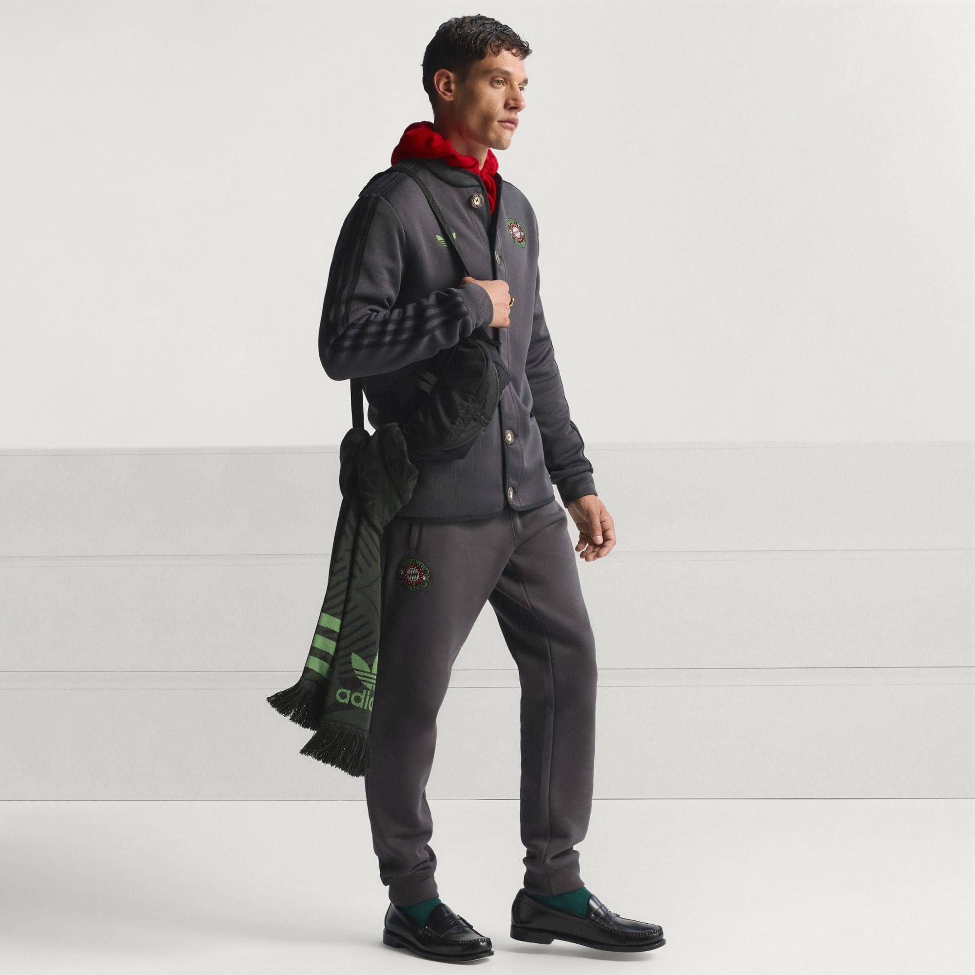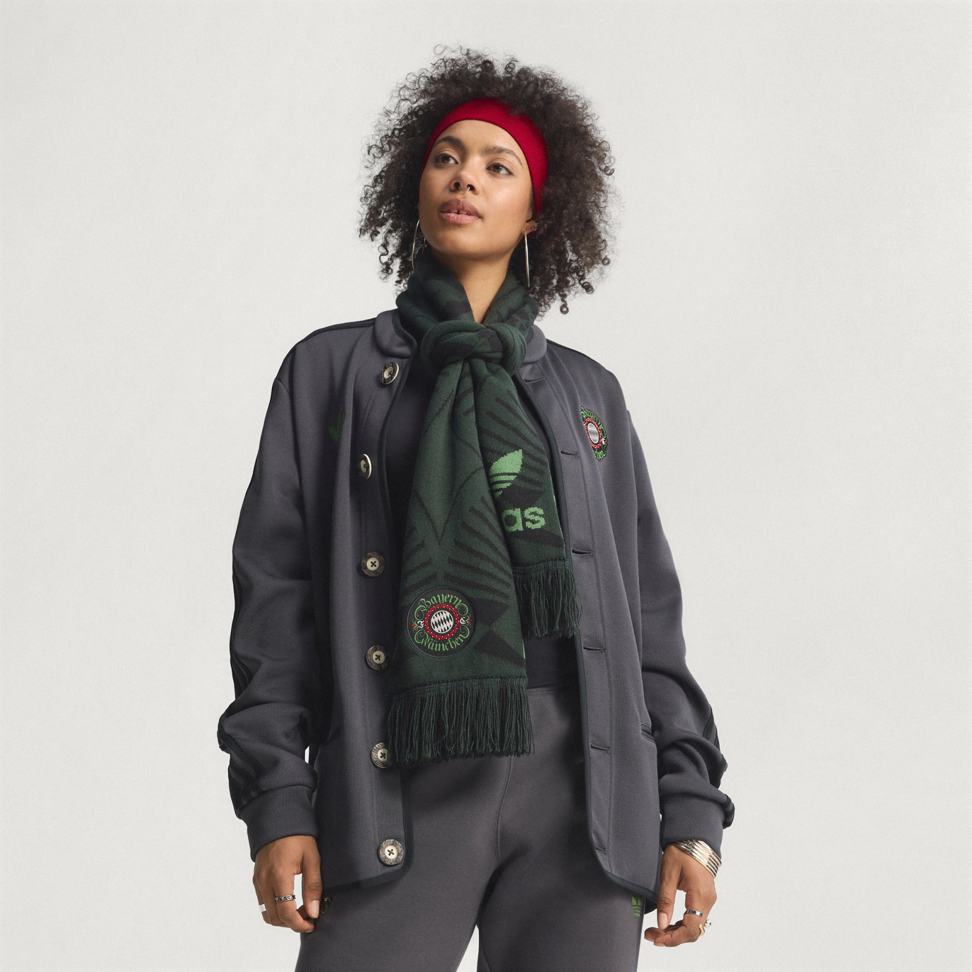 Mostra o teu orgulho de clube ao estilo tradicional da Baviera com este cachecol adidas do FC Bayern München. O seu design marcante faz referência ao equipamento especial do Wiesn usado pelos jogadores do clube em outubro. A construção em malha canelada plana e as extremidades com franjas proporcionam um aspeto e um toque clássicos, quer estejas a enfrentar multidões em dia de jogo ou a passar entre bancas de mercado.