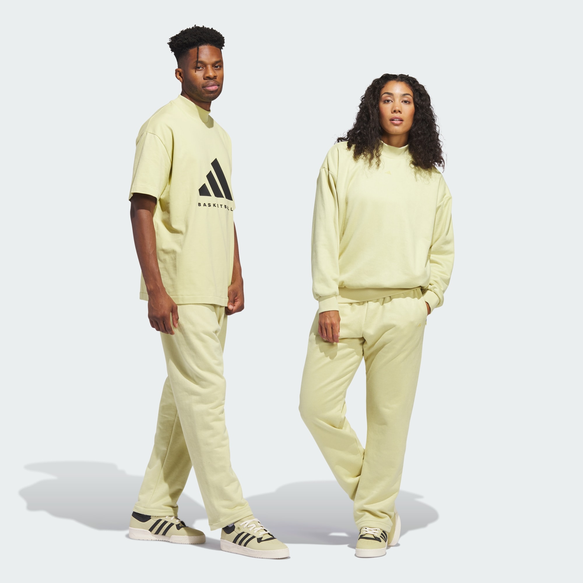 O próximo capítulo da adidas Basketball é uma exploração da forma, da funcionalidade e da cor. Uma coleção criada para se adaptar às necessidades dos atletas modernos. Estas calças de basquetebol são feitas em moletão premium com uma sensação de camurça e têm bolsos com fecho nas costuras laterais e cintura canelada.