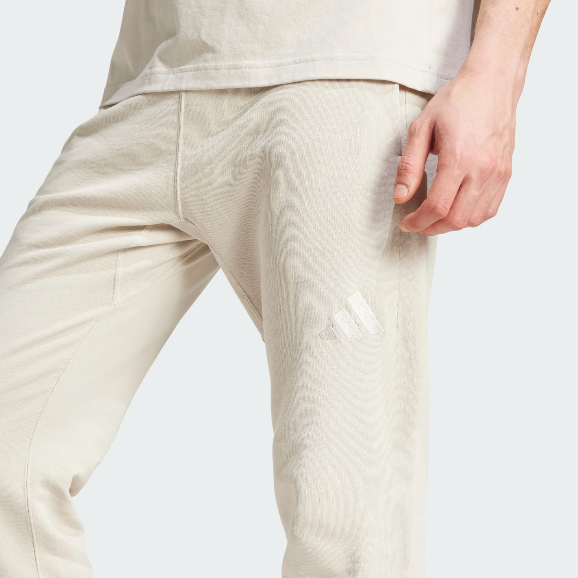 Conforto duradouro. Estas calças adidas são perfeitas para as manhãs de preguiça, as tardes caóticas e tudo o resto que te apetecer fazer. O moletão de algodão suave mantém-te confortável, quer estejas a relaxar em casa ou a tratar de umas coisas pela cidade. O corte afunilado com punhos elásticos é descontraído, mas refinado, e foi rematado com cintura com cordão para um ajuste personalizado. Combina estas calças com uma camisola com capuz para um look descontraído ou combina com a tua t-shirt favorita. Seja qual for o teu estado de espírito, estas calças estão lá para ti. Ao optarmos por materiais reciclados, conseguimos reutilizar materiais já criados, o que ajuda a reduzir o desperdício. Os materiais renováveis vão ajudar-nos a eliminar a nossa dependência de recursos finitos. Os nossos produtos feitos com uma mistura de materiais reciclados e renováveis incluem pelo menos 70% destes materiais.