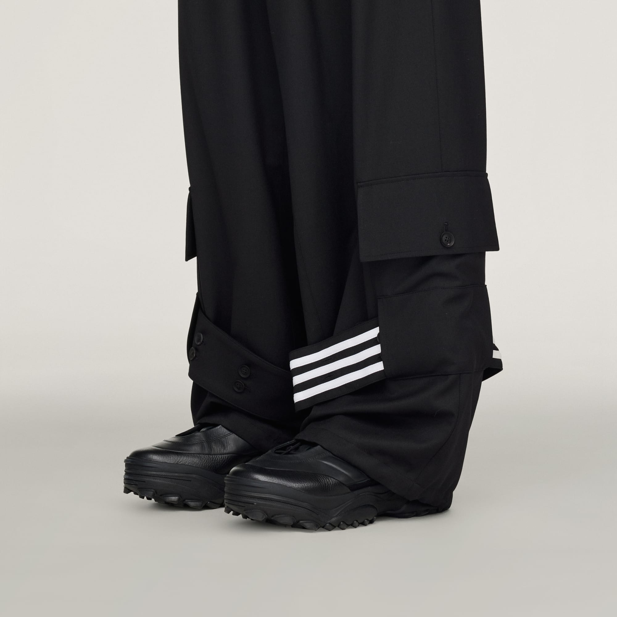 Calças cargo de lã, por Y-3.
