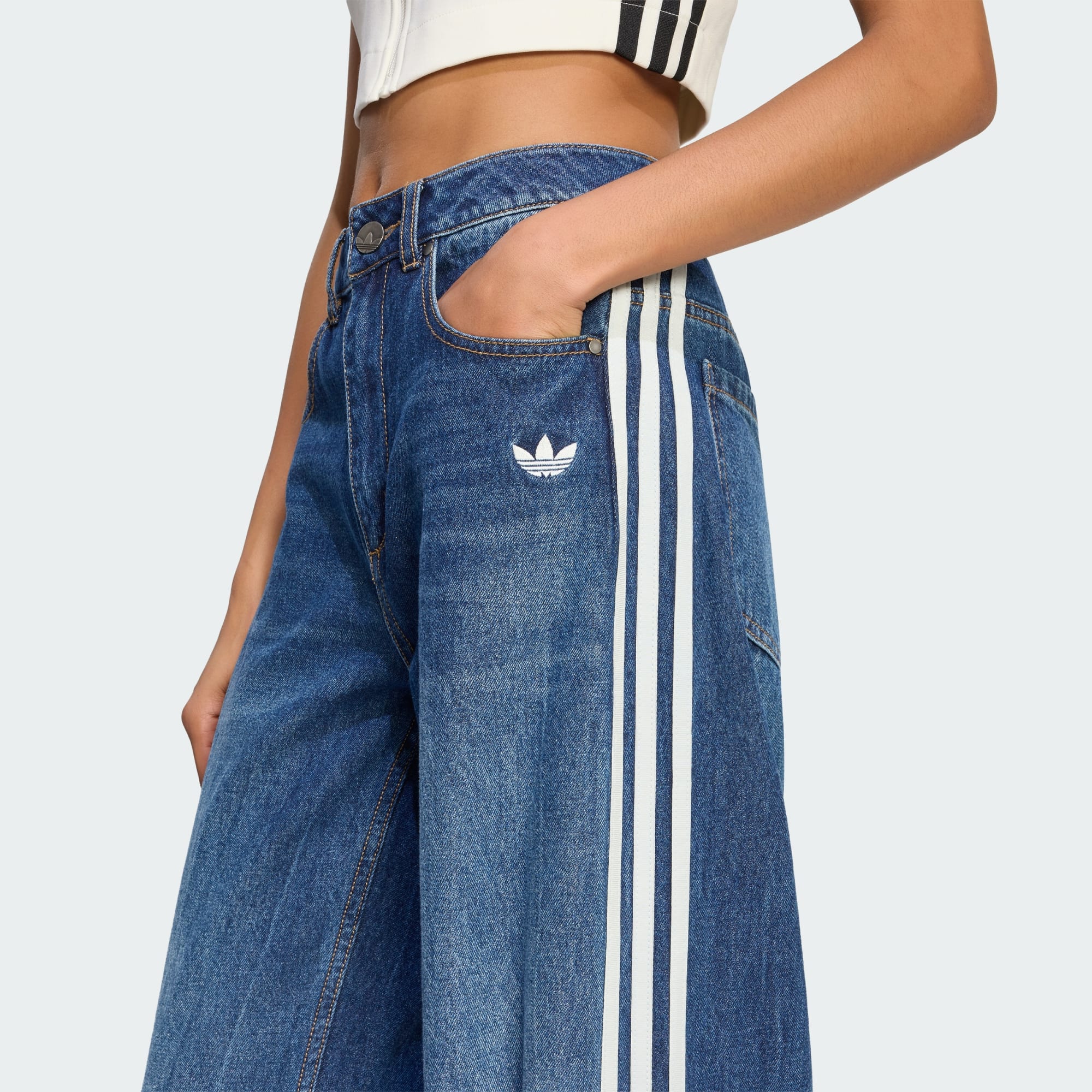 Apresentamos as calças de ganga Vintage, concebidas para aqueles que apreciam a moda arrojada e descontraída com um toque moderno. Quer estejas a sair para um dia descontraído na cidade ou a encontrar-te com amigos, vais destacar-te da multidão. O design oversize é espaçoso, sem definição do corpo, oferecendo conforto e uma silhueta descontraída, permitindo-te movimentares-te com facilidade. Incluem dois bolsos frontais e dois bolsos traseiros para guardares pequenos artigos, bem como presilhas para colocares o teu cinto preferido. Confecionadas em ganga para maior durabilidade e um visual elegante, os toques finais são adicionados pelas icónicas 3 riscas adidas, que correm ao longo de cada perna exterior, e pelo trevo na parte superior esquerda da coxa. Combina-as com sapatilhas e uma t-shirt para um look intemporal e moderno. O espírito da adidas Originals transparece em cada detalhe, permitindo-te expressares-te com otimismo e autenticidade. Faz destas calças de ganga a tua escolha preferida para o estilo do dia a dia.