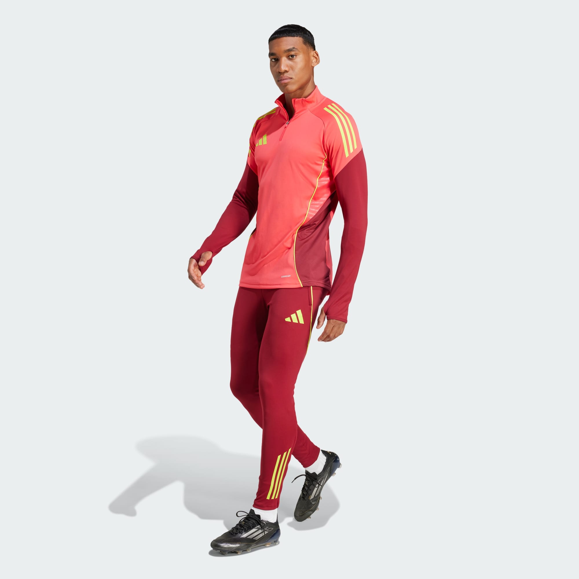 Não deixes que as sessões ao frio abrandem a tua prestação. Veste estas calças Tiro 25 Competition e arrasa todas as sessões. Estas calças justas incluem AEROREADY para manter a humidade sob controlo até voltares aos balneários. O logótipo das 3 barras e as 3 riscas demonstram que levas o futebol muito a sério. Este produto foi feito com 100% materiais reciclados. Ao reutilizar materiais já criados, ajudamos a reduzir o desperdício e a nossa dependência de recursos finitos, diminuindo a pegada ecológica dos produtos que fabricamos.
