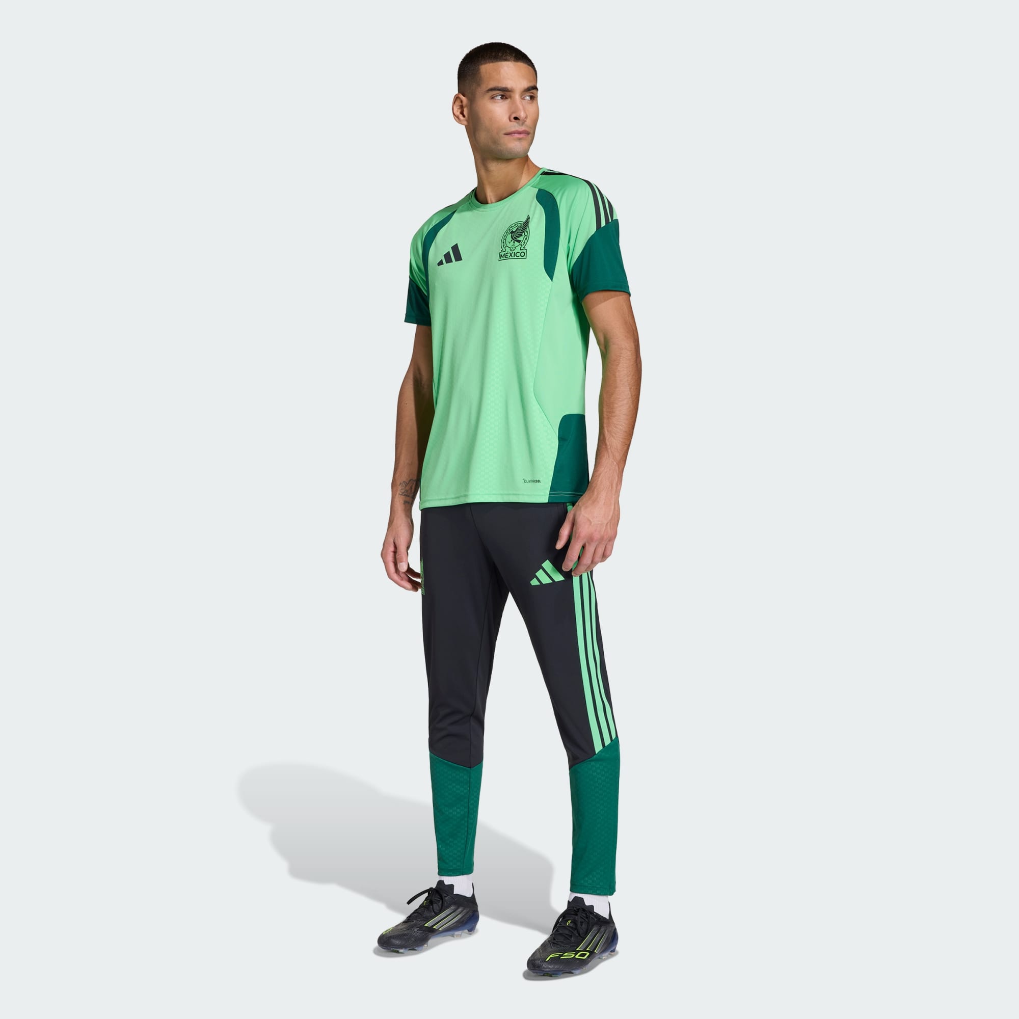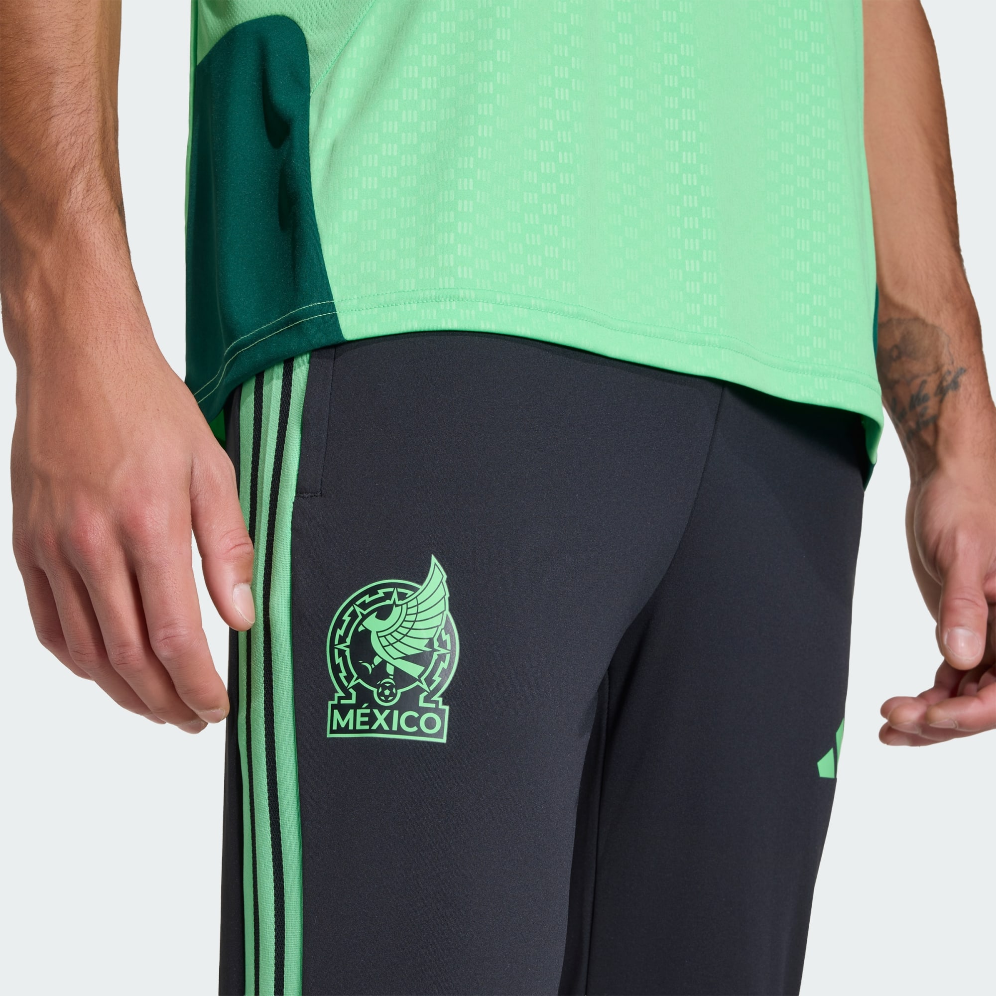 Entra em campo com confiança com as Calças de Treino Tiro 26 do México. Inspiradas no design vibrante do equipamento da casa, estas calças combinam na perfeição a tradição com o desempenho moderno. Concebidas para os entusiastas do futebol, apresentam um corte justo que se move contigo, ajudando-te a sentires-te confortável durante sessões de treino intensas. O fecho de cordão oferece ajuste, permitindo uma sensação de segurança enquanto treinas. A tecnologia Formotion integrada foi concebida para libertar os teus movimentos e não para os restringir quer estejas a correr baixo campo ou a praticar exercícios. Os tecidos elásticos mecânicos proporcionam flexibilidade, permitindo-te ultrapassar os teus limites no campo. Quer estejas a aperfeiçoar as tuas habilidades ou a aquecer para um jogo, estas calças são a tua escolha para as tuas sessões. Abraça o espírito do jogo com a adidas e leva a tua experiência de treino para o próximo nível.