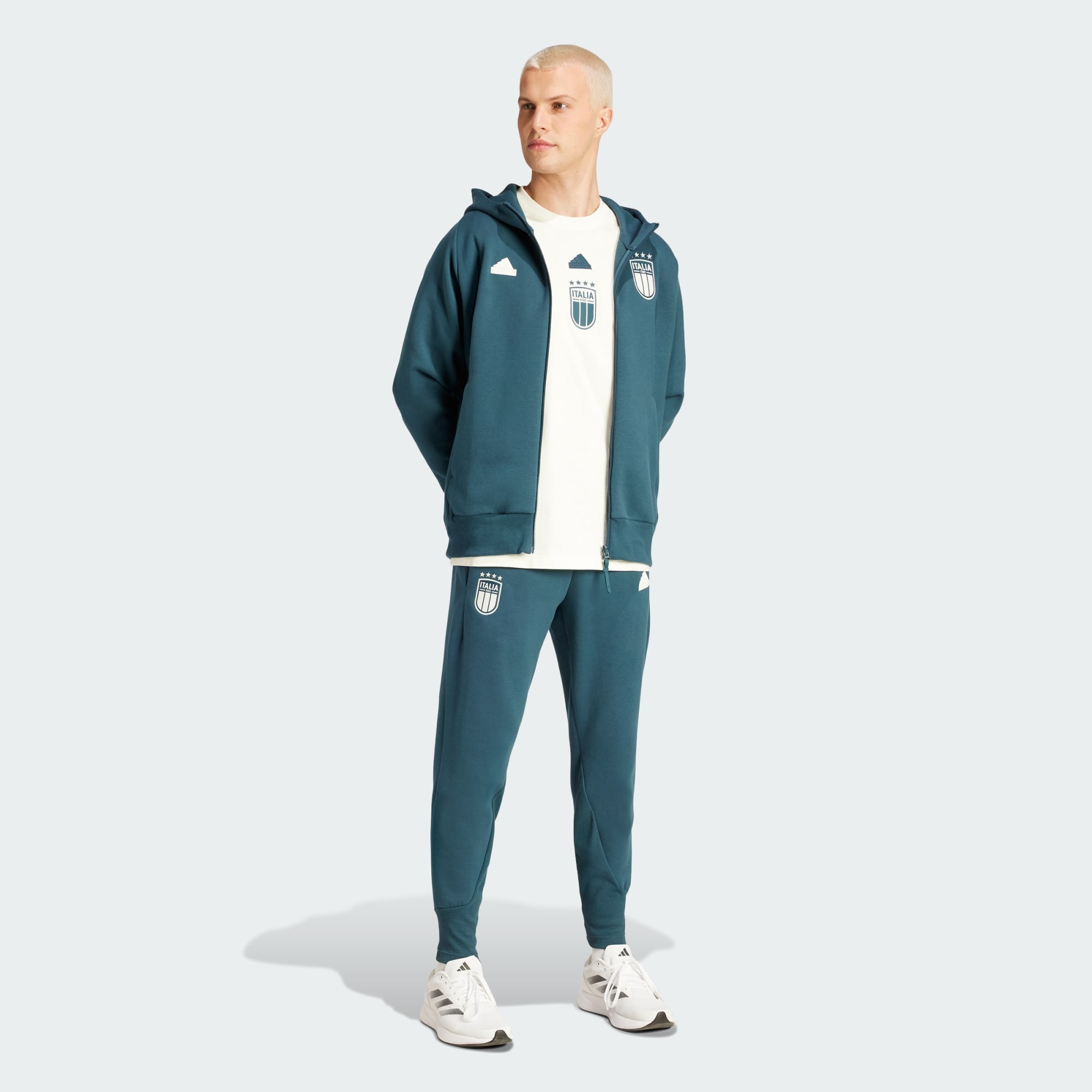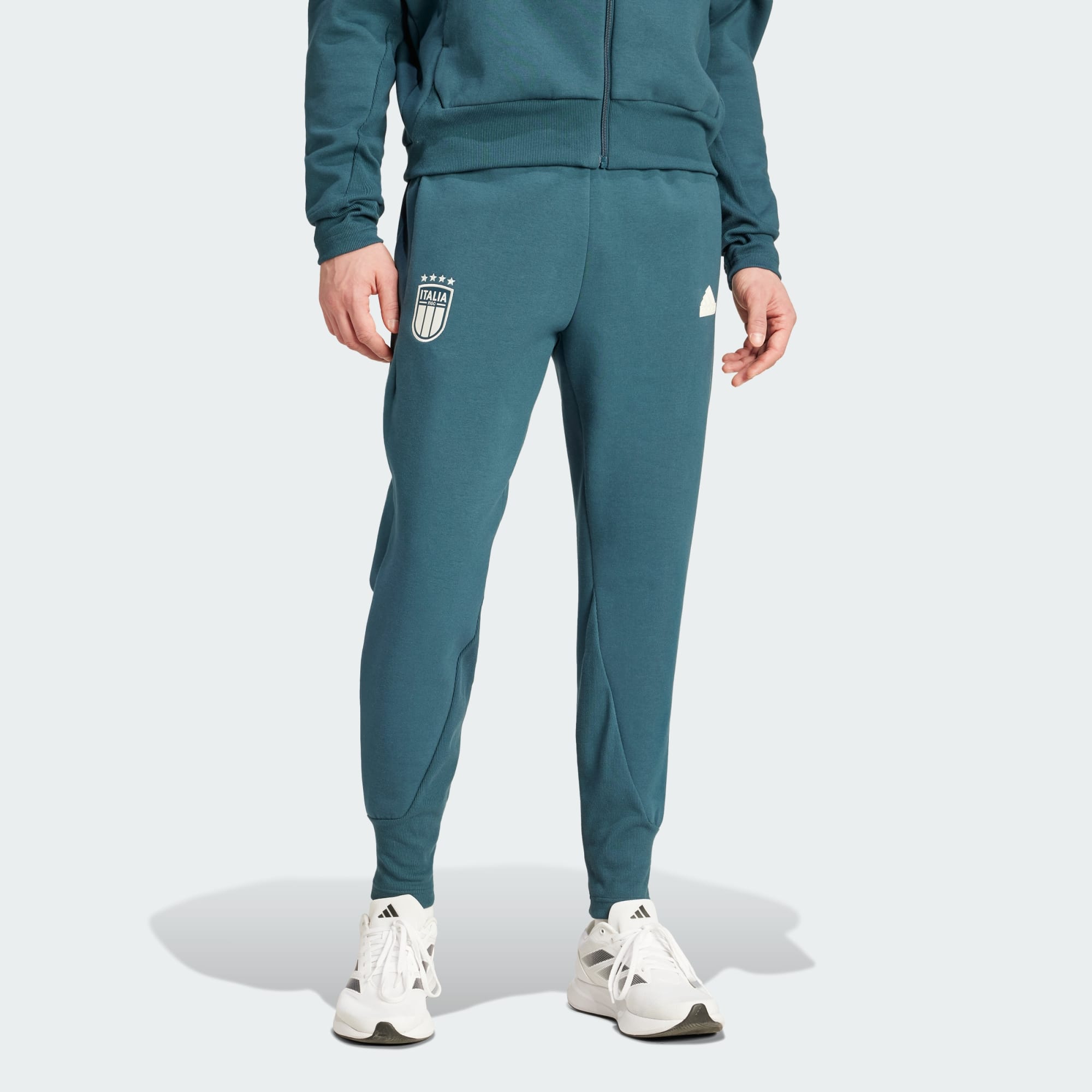Viaja com estilo, quer seja para um jogo fora ou para as férias de uma vida. Estas leves e resistentes calças de viagem adidas da Itália acompanham todos os teus movimentos graças à construção em malha dupla elástica. O AEROREADY absorvente mantém o teu corpo fresco enquanto exploras o que te rodeia. O emblema na perna não deixa dúvidas relativamente a por quem torces. Ao optarmos por materiais reciclados, conseguimos reutilizar materiais já criados, o que ajuda a reduzir o desperdício. Os materiais renováveis vão ajudar-nos a eliminar a nossa dependência de recursos finitos. Os nossos produtos feitos com uma mistura de materiais reciclados e renováveis incluem pelo menos 70% destes materiais.