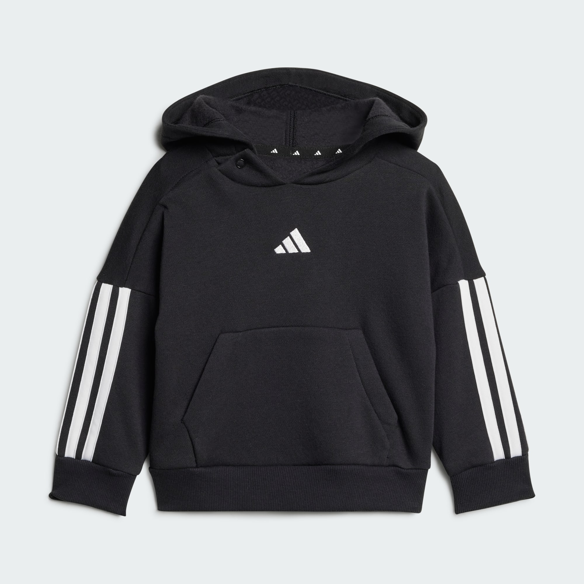 Quer o dia do teu bebé inclua um encontro para brincar, uma sesta, ou ambos, este confortável conjunto adidas dá conta do recado. A aconchegante construção em fleece mantém-no quente e pronto para a aventura, ao passo que os punhos canelados e a cintura elástica proporcionam um ajuste seguro. As icónicas 3 riscas acrescentam um estilo desportivo. Ao optarmos por materiais reciclados, conseguimos reutilizar materiais já criados, o que ajuda a reduzir o desperdício. Os materiais renováveis vão ajudar-nos a eliminar a nossa dependência de recursos finitos. Os nossos produtos feitos com uma mistura de materiais reciclados e renováveis incluem pelo menos 70% destes materiais.