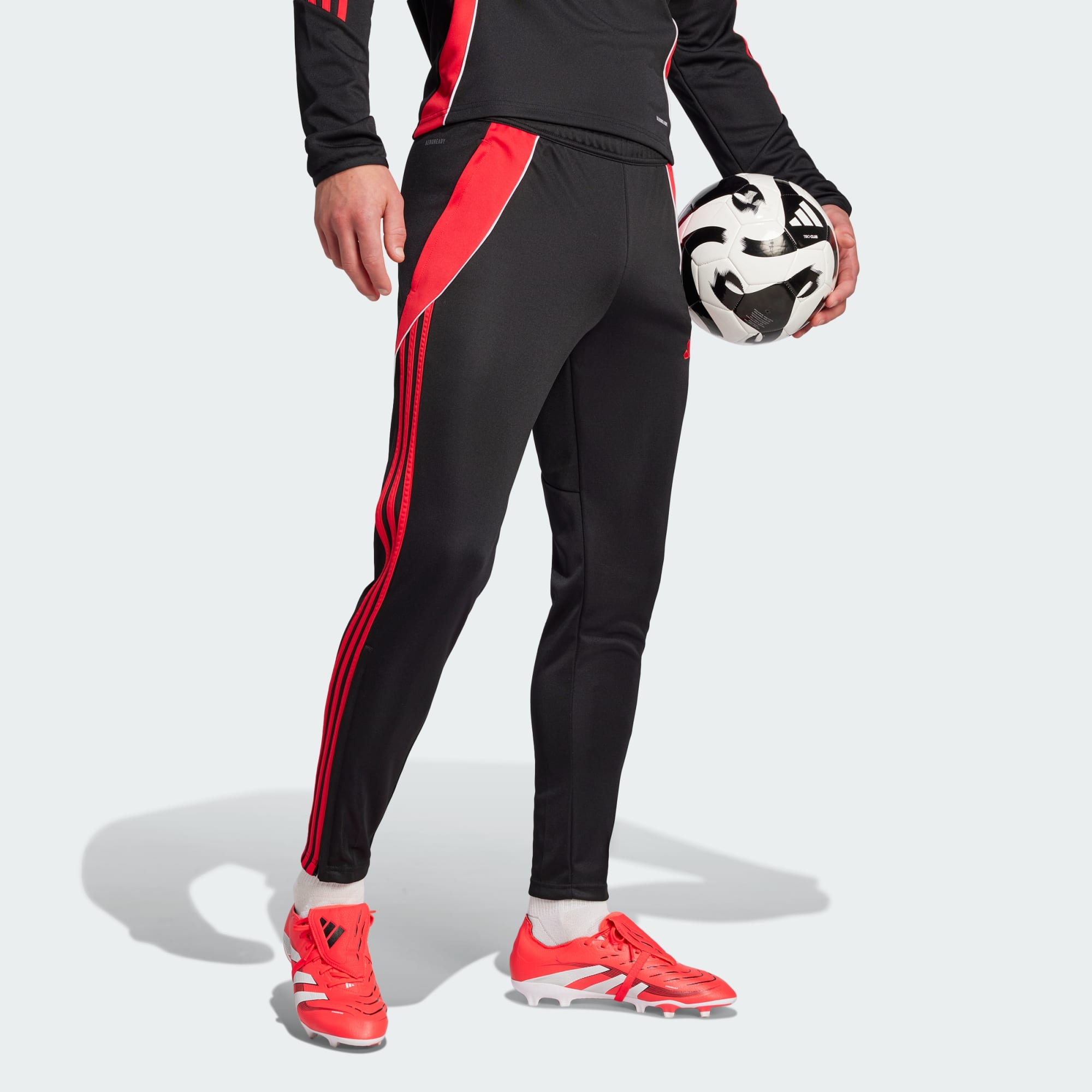 Mantém a velocidade máxima durante as sessões de treino intensas. Estas calças de futebol adidas têm corte justo para reduzir o peso e a resistência ao vento, permitindo-te ir mais longe. Têm malha dupla leve e AEROREADY absorvente, mantendo o teu corpo confortável e seco desde o aquecimento aos alongamentos. Os bolsos com fecho guardam as tuas coisas essenciais. Este produto foi feito com 100% materiais reciclados. Ao reutilizar materiais já criados, ajudamos a reduzir o desperdício e a nossa dependência de recursos finitos, diminuindo a pegada ecológica dos produtos que fabricamos.