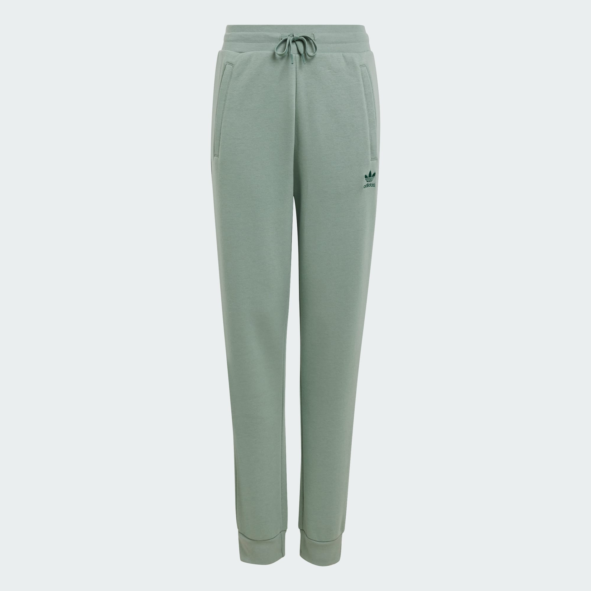 Tão confortáveis que vais querer viver nelas. Estas calças adidas em tamanho júnior são feitas de fleece aconchegante e têm uma cintura elástica com cordão que te permite ajustá-las. O logótipo do trevo bordado e os punhos canelados transformam uma simples peça essencial numa afirmação de estilo.