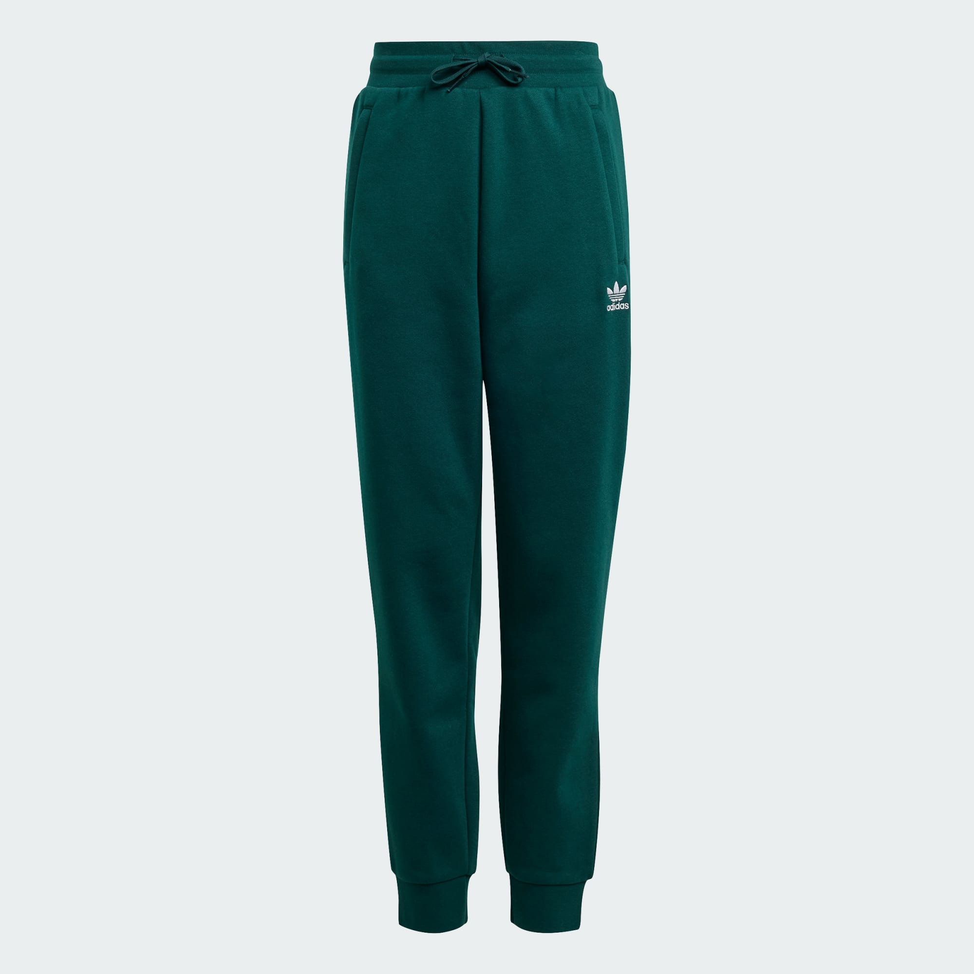 Tão confortáveis que vais querer viver nelas. Estas calças adidas em tamanho júnior são feitas de fleece aconchegante e têm uma cintura elástica com cordão que te permite ajustá-las. O logótipo do trevo bordado e os punhos canelados transformam uma simples peça essencial numa afirmação de estilo.