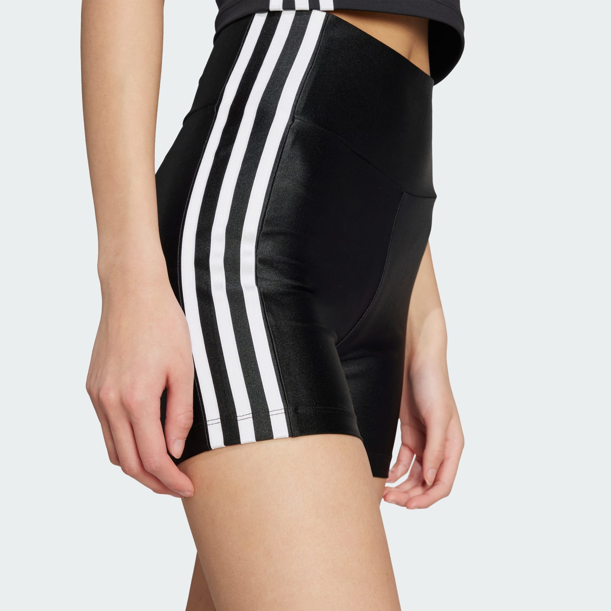 These 3-stripe adicolor booty shorts are very comfy and the perfect length, width and quality material. The price was amazing and I love the white stripes on black product type when it goes from waist to the bottom of the material. I wish they had more in stock all year around. I love the Essentials type material as well as the normal leggings. Please keep making them!
