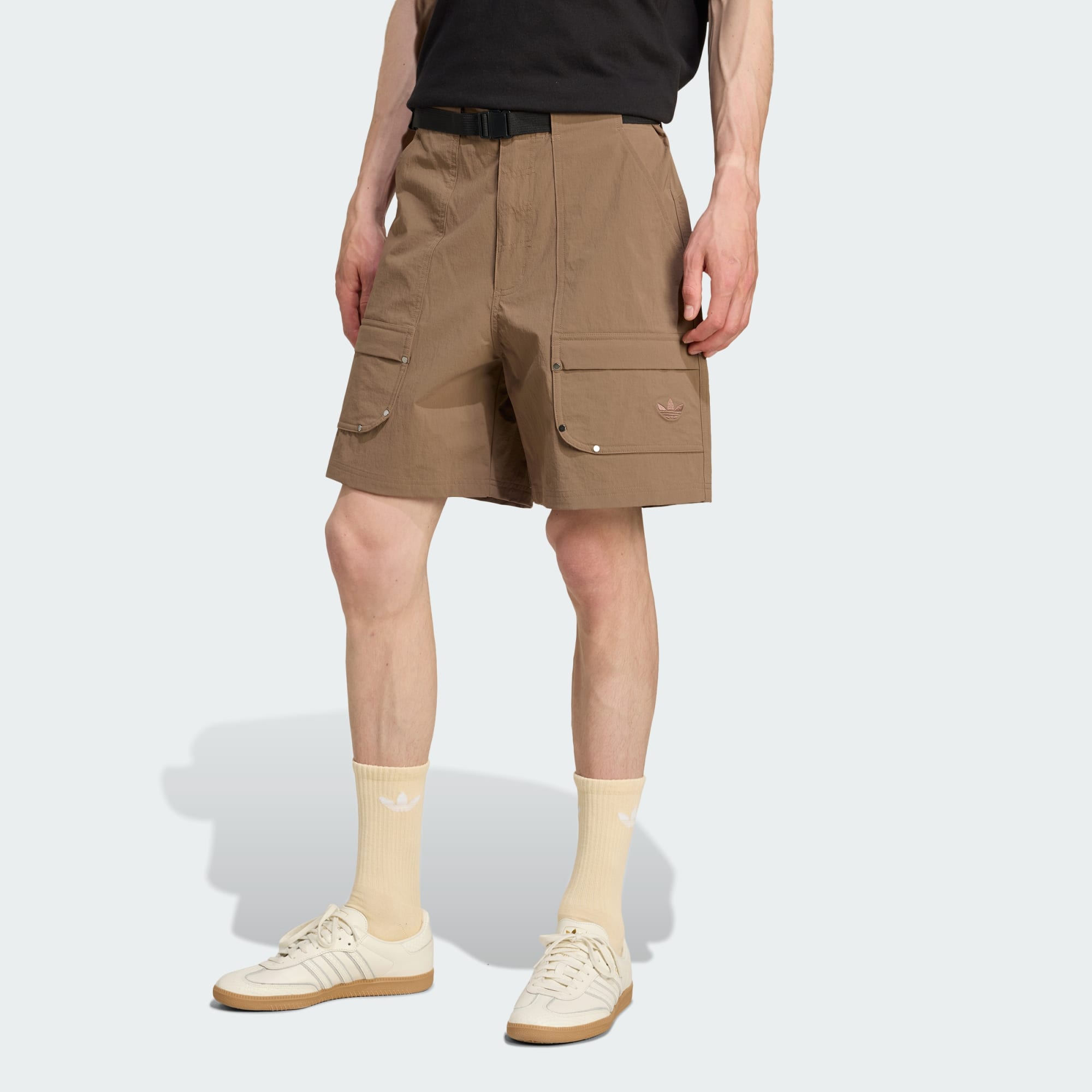 Tão funcionais quanto repletos de estilo, estes calções cargo da adidas estão prontos para tudo. A construção em malha simples resistente inclui espaçosos bolsos com aba para as tuas coisas essenciais. O formato largo permite-te mover livre e confortavelmente. O emblema do trevo na perna esquerda remata o look.