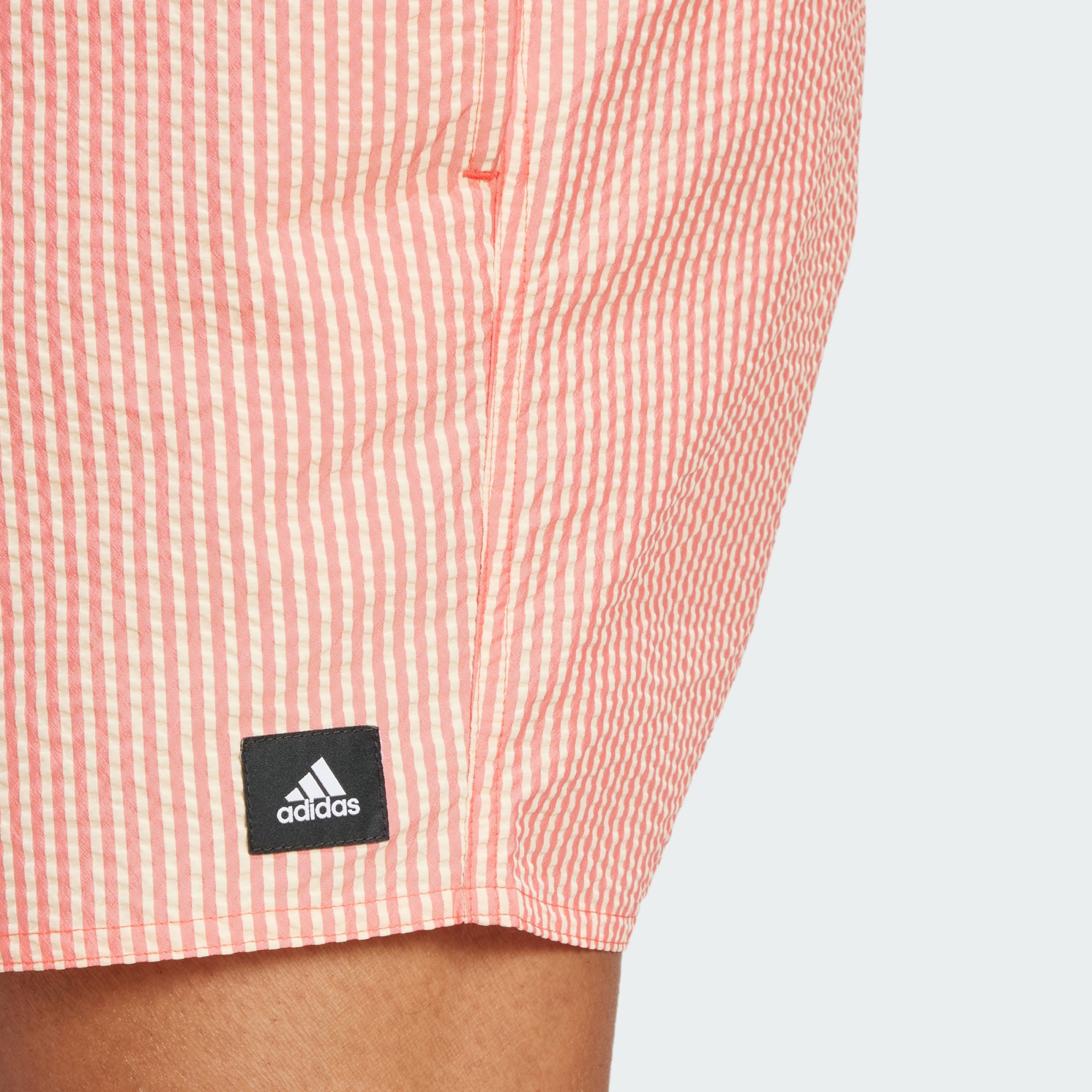 Calções em seersucker para mar, sol e areia. Os essenciais vão apanhar banhos de sol. Quer estejas a descontrair na piscina ou a preparar-te para uma viagem à praia, estes calções de natação adidas permitem-te mover com tranquilidade. O design subtil combina facilmente com todos os tipos de t-shirt. Além disso, incluem bolsos para as tuas coisas essenciais. Feito com 100% materiais reciclados, este produto representa uma das nossas soluções para ajudar a acabar com o desperdício de plástico.