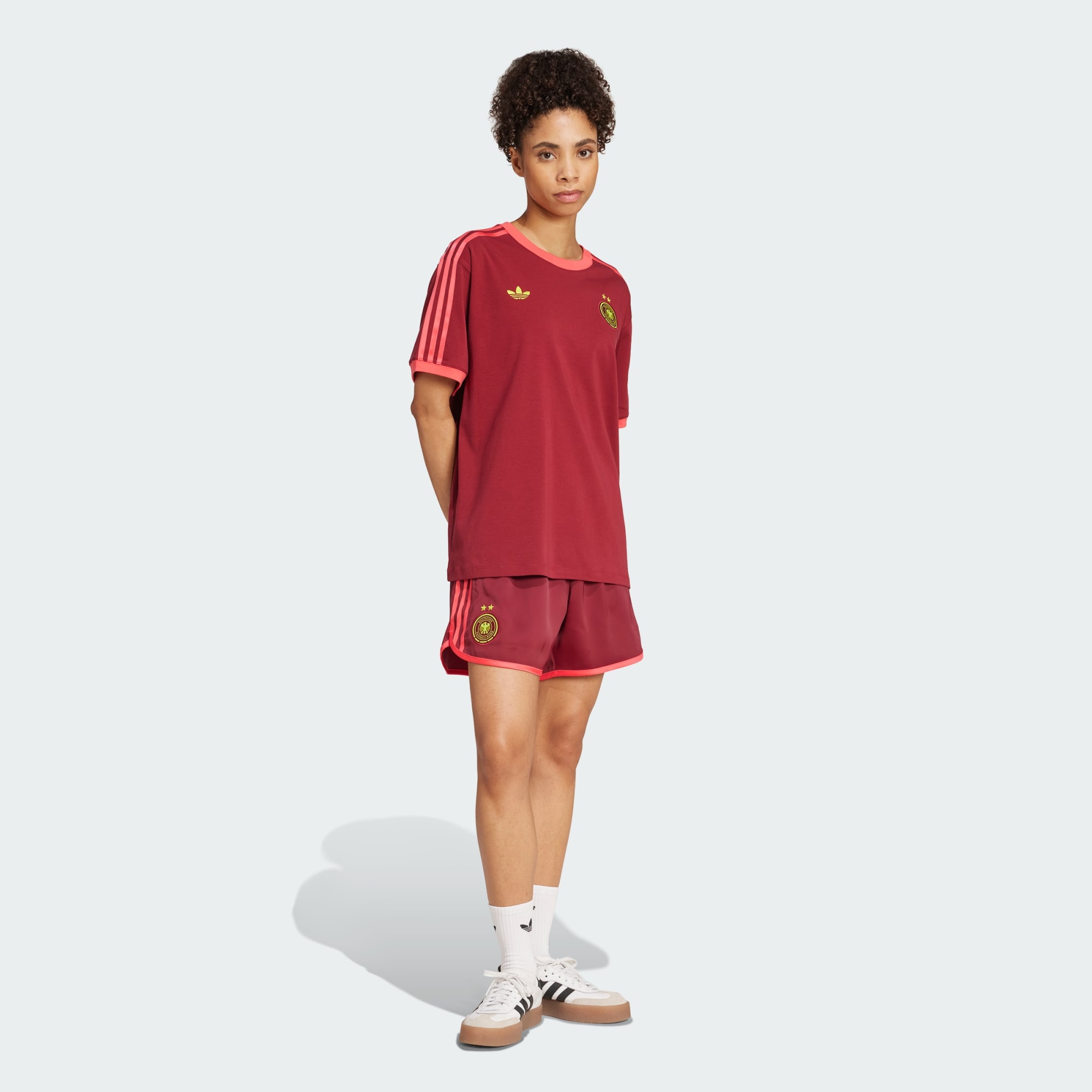 Veste estes superconfortáveis calções de futebol adidas e mostra a tua paixão pela seleção. Elegantemente simples, são feitos em cetim macio e rematados com um trevo e o emblema da seleção feminina da Alemanha. O bordeaux evoca o equipamento alternativo da equipa, inspirado na arte.