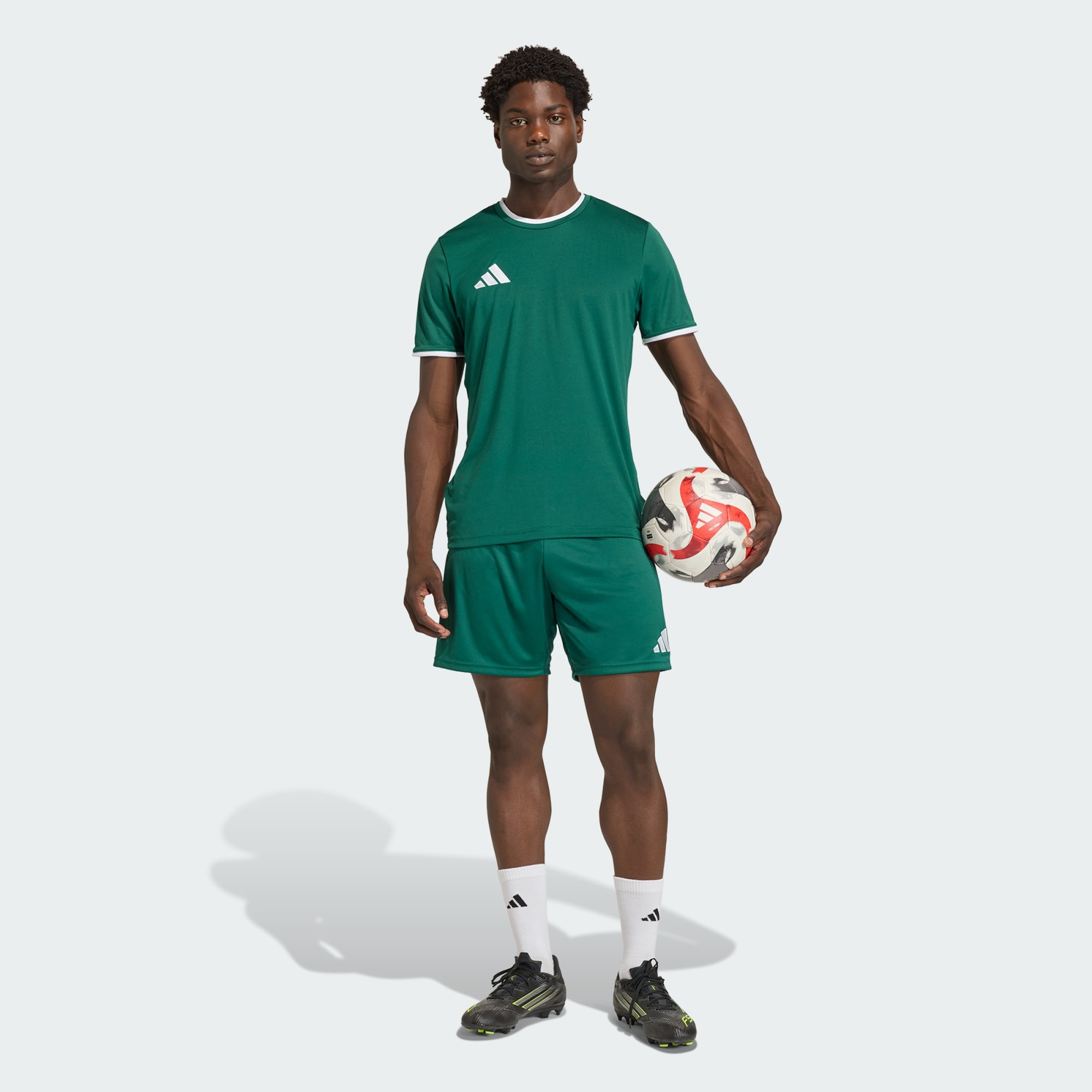 Quando se trata de futebol, os calções Entrada26 são a tua escolha, tanto em termos de estilo como de desempenho. Concebidos a pensar na simplicidade, estão também disponíveis em tamanhos grandes, o que os torna adequados para jogadores de vários níveis. Concentra-te na tua técnica com estes calções inovadores feitos de tecido de malha interlock. CORPO FRESCO. CORPO SECO. CORPO A POSTOS. A tecnologia Climacool absorve e dispersa o suor para um desempenho fresco, seco e sem distrações. O corte regular e a cintura média proporcionam facilidade de movimentos no campo, quer sejas avançado ou estejas a liderar a defesa, e o cordão ajustável proporciona conforto adicional. Bordados com o icónico Badge of Sport da adidas, dão um toque clássico ao teu visual. Para sessões de treino intensas ou jogos da liga, estes calções combinam estilo e funcionalidade para que te sintas pronto para a ação.