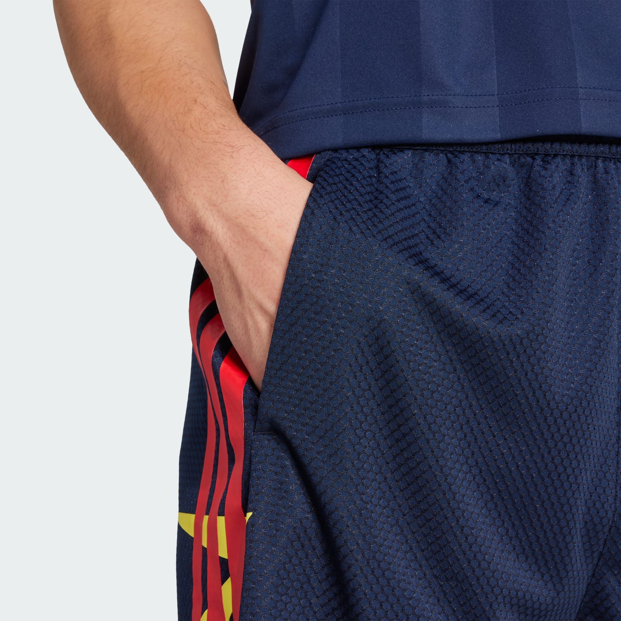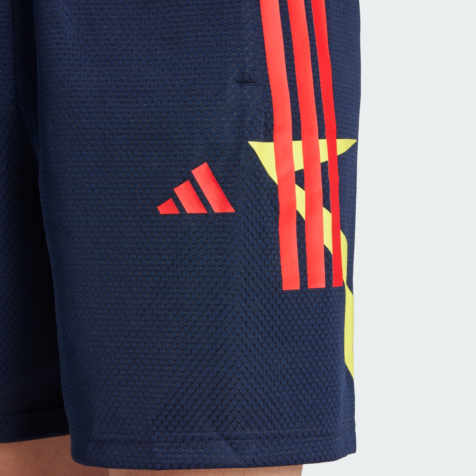 Estes calções adidas oferecem uma abordagem colorida ao estilo do futebol moderno. A malha e a cintura com cordão tornam-nos casuais e confortáveis. Blocos de cor vibrantes conferem muito estilo. Este produto foi feito com 100% materiais reciclados. Ao reutilizar materiais já criados, ajudamos a reduzir o desperdício e a nossa dependência de recursos finitos, diminuindo a pegada ecológica dos produtos que fabricamos.