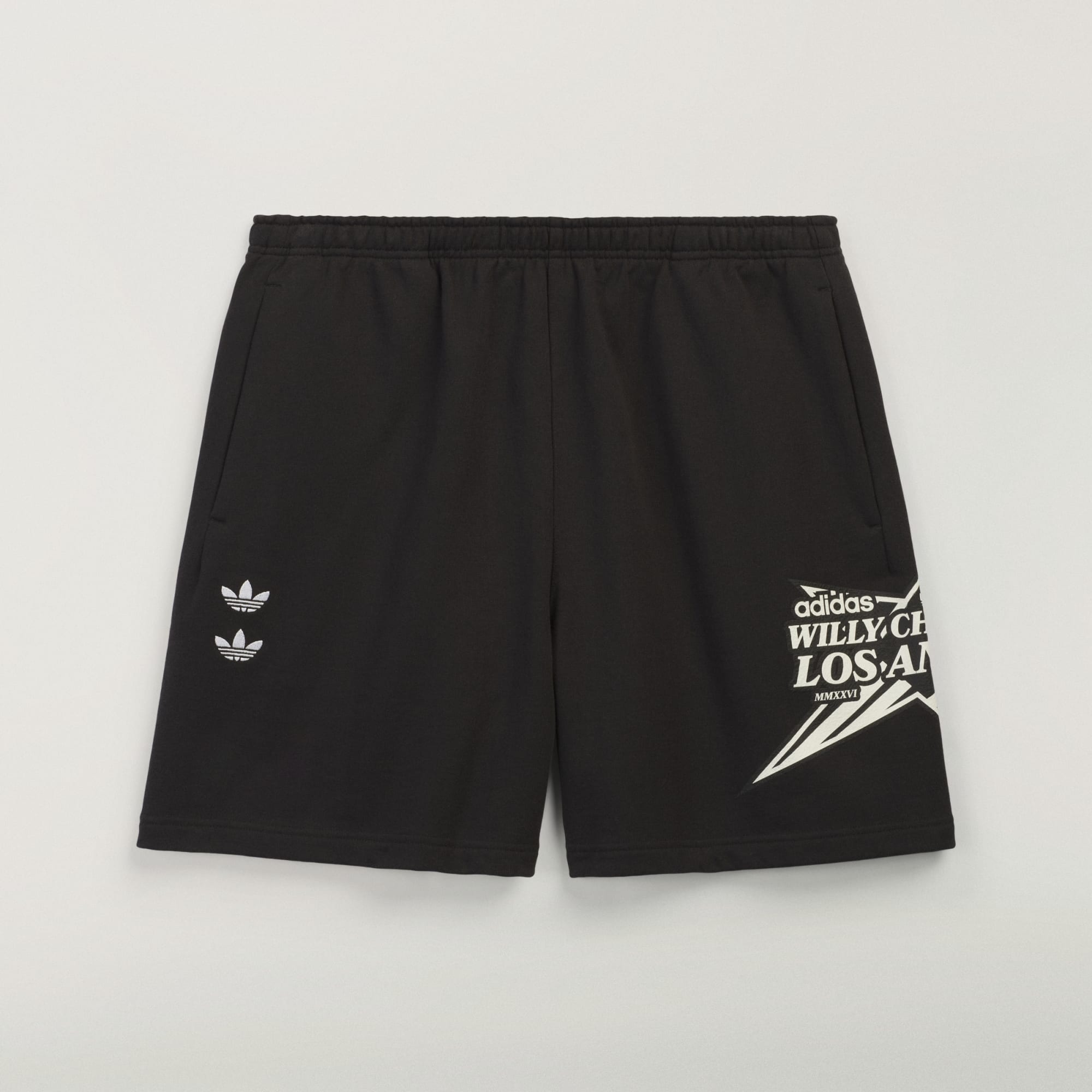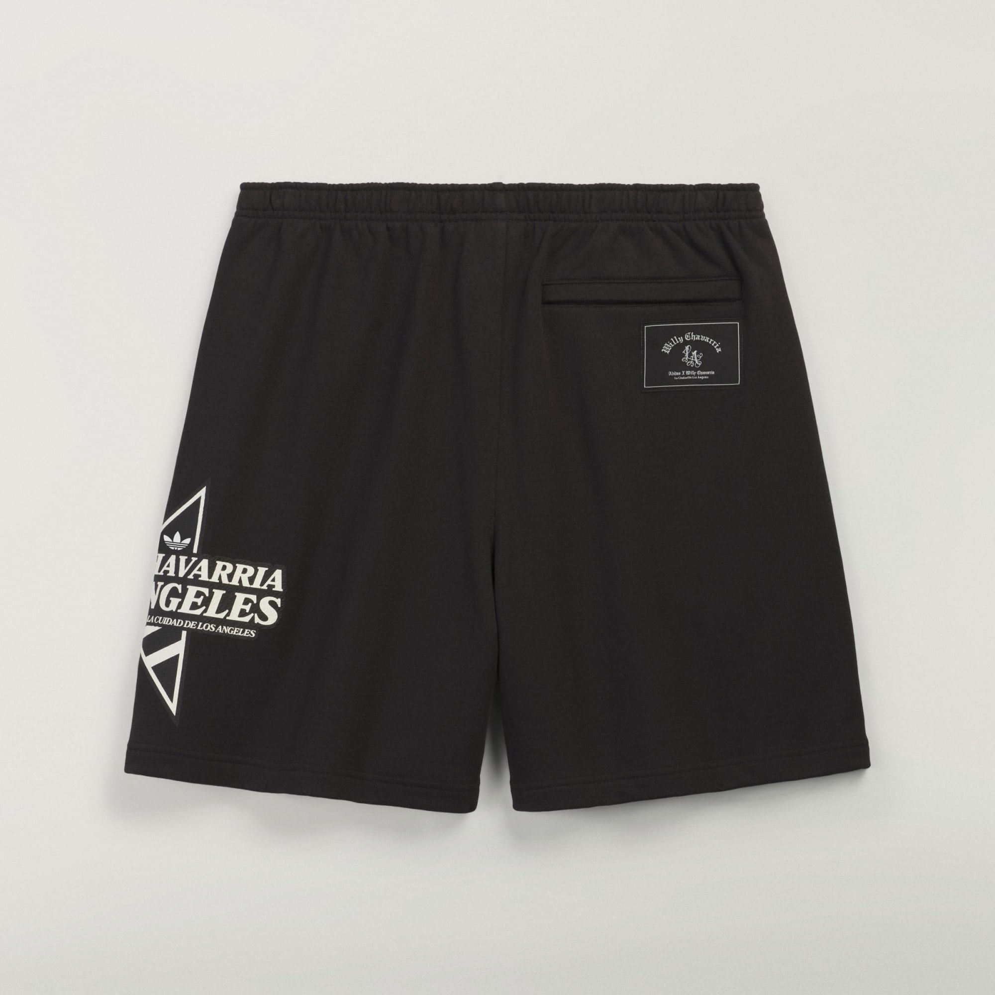 Os calções Star Logo Chavarria são confecionados em moletão denso, 100% algodão de 490 g/m², garantindo uma qualidade e um conforto extraordinários. De corte normal, os calções apresentam detalhes funcionais, como um cós elástico fechado com cordão, dois bolsos laterais com fecho de correr e um bolso posterior com fecho de correr no lado direito. A marca é simbolizada pelos logótipos do trevo duplos bordados na coxa direita. Na perna esquerda destaca-se um logótipo grande em forma da estrela de Willy Chavarria, estampado em serigrafia, e no bolso posterior está cosida uma etiqueta desportiva Willy Chavarria.