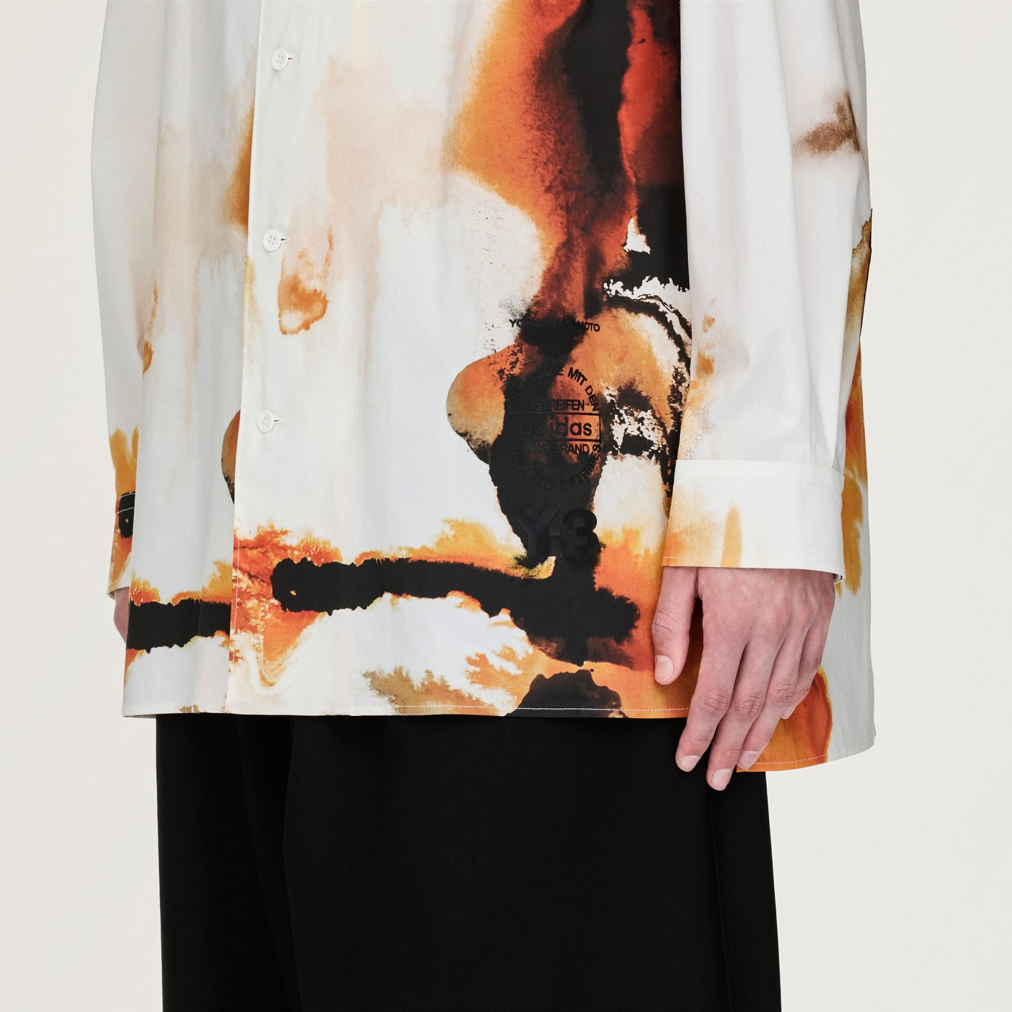 A camisola Y-3 AOP tem uma abordagem expressiva ao estilo. O tecido numa mistura de algodão é macio e, ao mesmo tempo, firme. O design destaca-se pelos detalhes sofisticados: uma gola e punhos ajustáveis por botões. Inspirado na tinta âmbar, o estampado único representa calor e energia, transformação e beleza que são expressos através da mudança subtil dos tons dourados para laranjas e castanhos ricos.