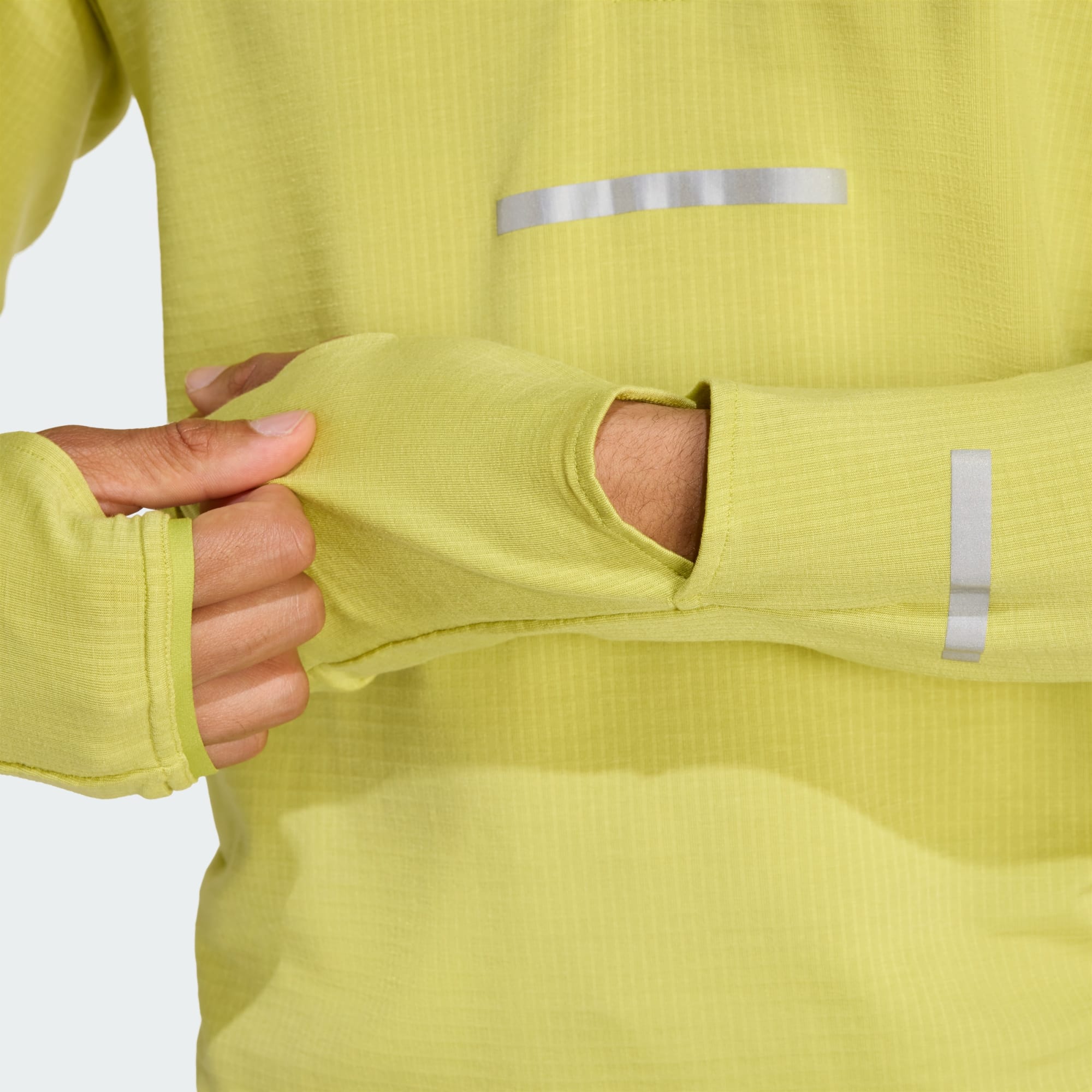 Todo o ano. Qualquer tempo. Aperta os cordões das sapatilhas e sai por aí. Nos dias mais frios, esta camisola de corrida adidas aumenta o teu intervalo de conforto. É feita com CLIMAWARM+ e concebida para ser usada em camadas, permitindo adicionar calor sem volume, numa camada intermédia versátil. Pequenos detalhes concebidos pelo corredor, como um bolso para cartões de baixo perfil, uma janela para o relógio e aberturas para os polegares contribuem para uma melhor experiência de corrida.