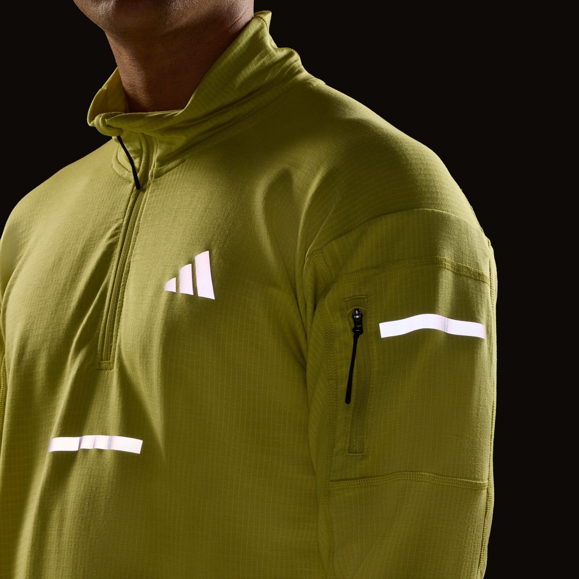 Uma camisola de corrida com meio-fecho feito com CLIMAWARM+, o nosso melhor isolamento térmico.