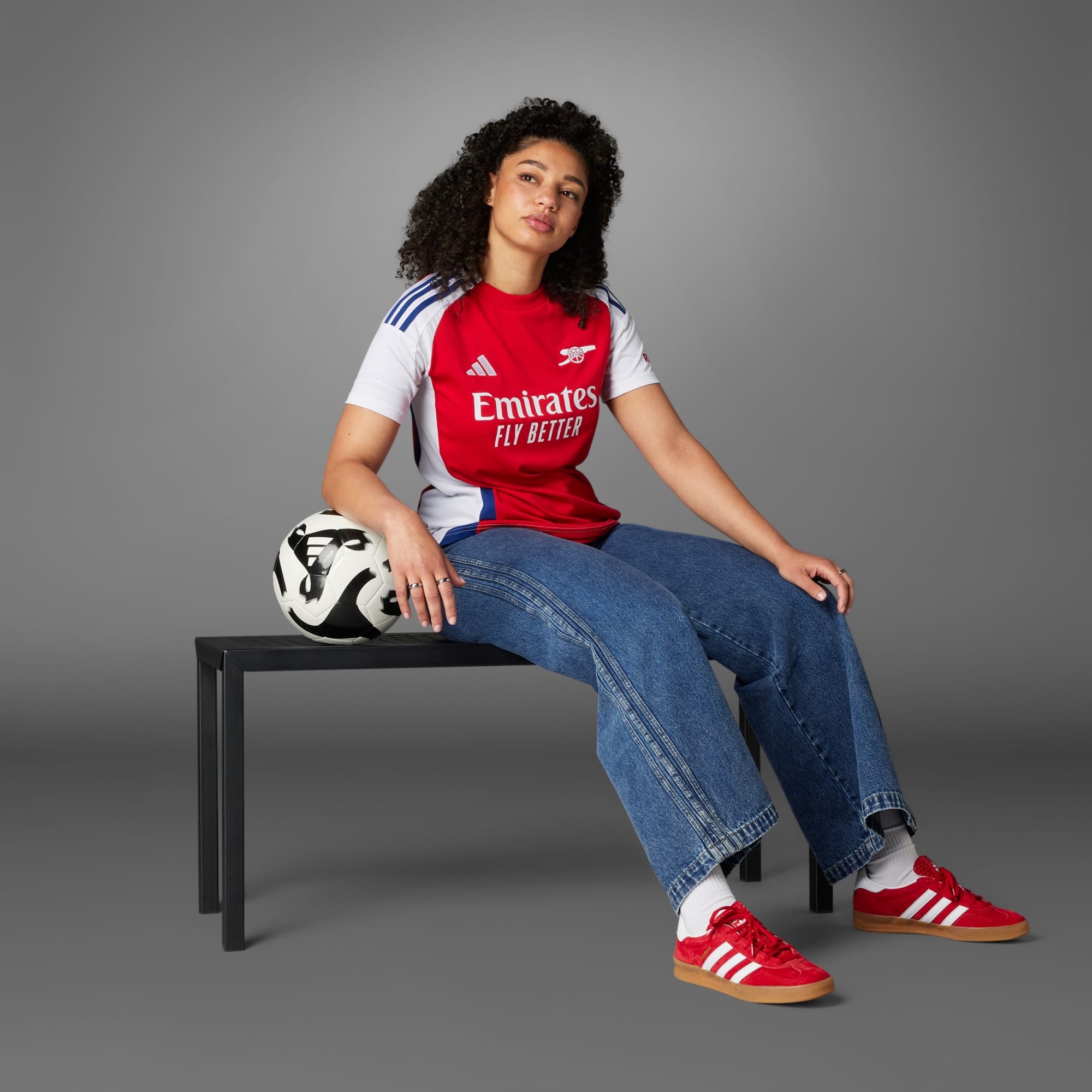 O design da camisola principal 24/25 do Arsenal combina elementos tradicionais do clube, como o icónico canhão e as intemporais cores vermelha e azul-marinho, com tecnologia inovadora para um desempenho de elite em campo.