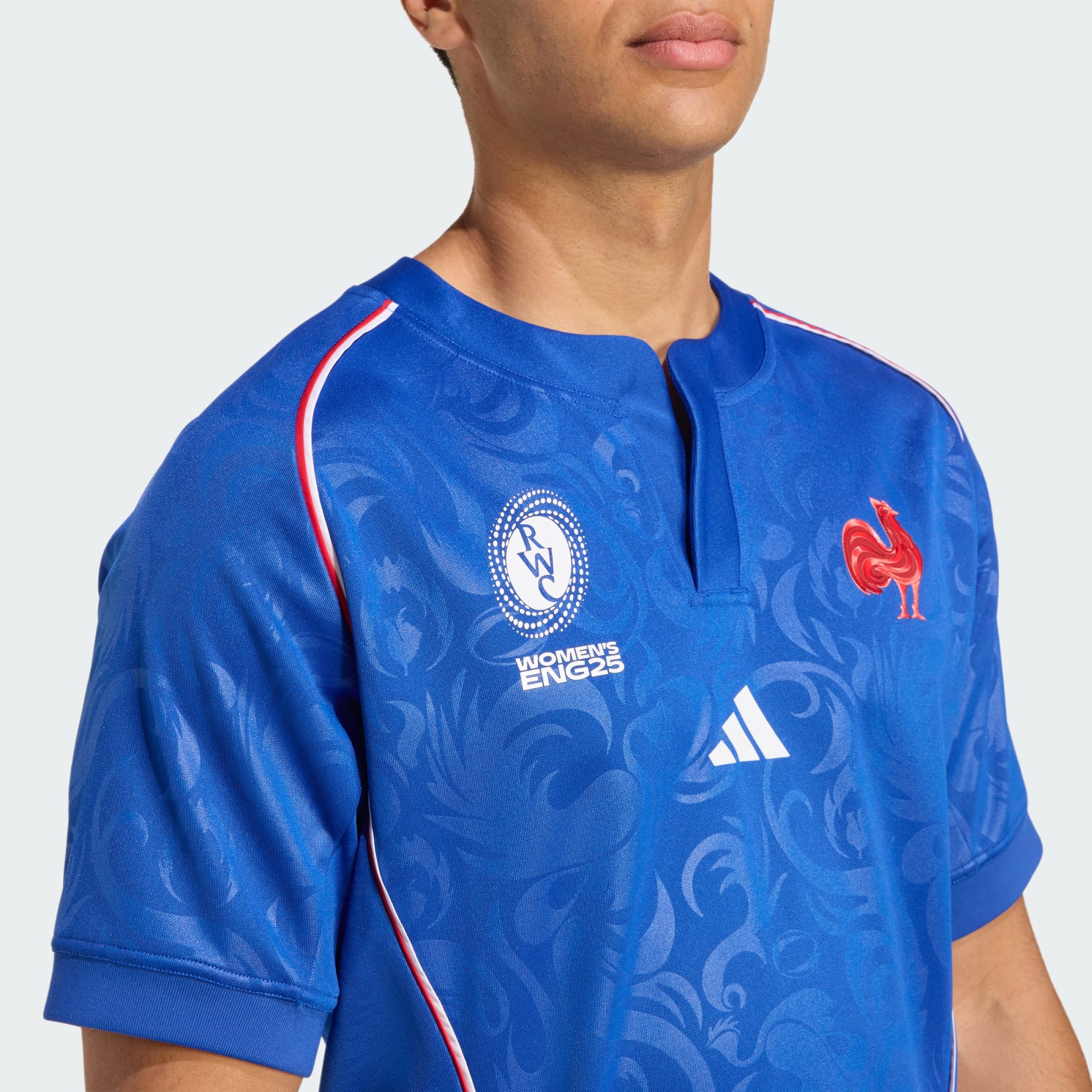 Grita pelos Les Bleus enquanto protagonizam o maior palco do râguebi feminino. Revestida com as famosas cores azuis da França, esta camisola principal da adidas adiciona detalhes intrincados inspirados nos galos gauleses e tubulações contrastantes para uma pitada extra de talento. Seu tecido piqué macio é resistente o suficiente para ação no jogo e macio o suficiente para conforto fora de campo. Um emblema de equipa no peito completa um look que tem tudo a ver com orgulho.