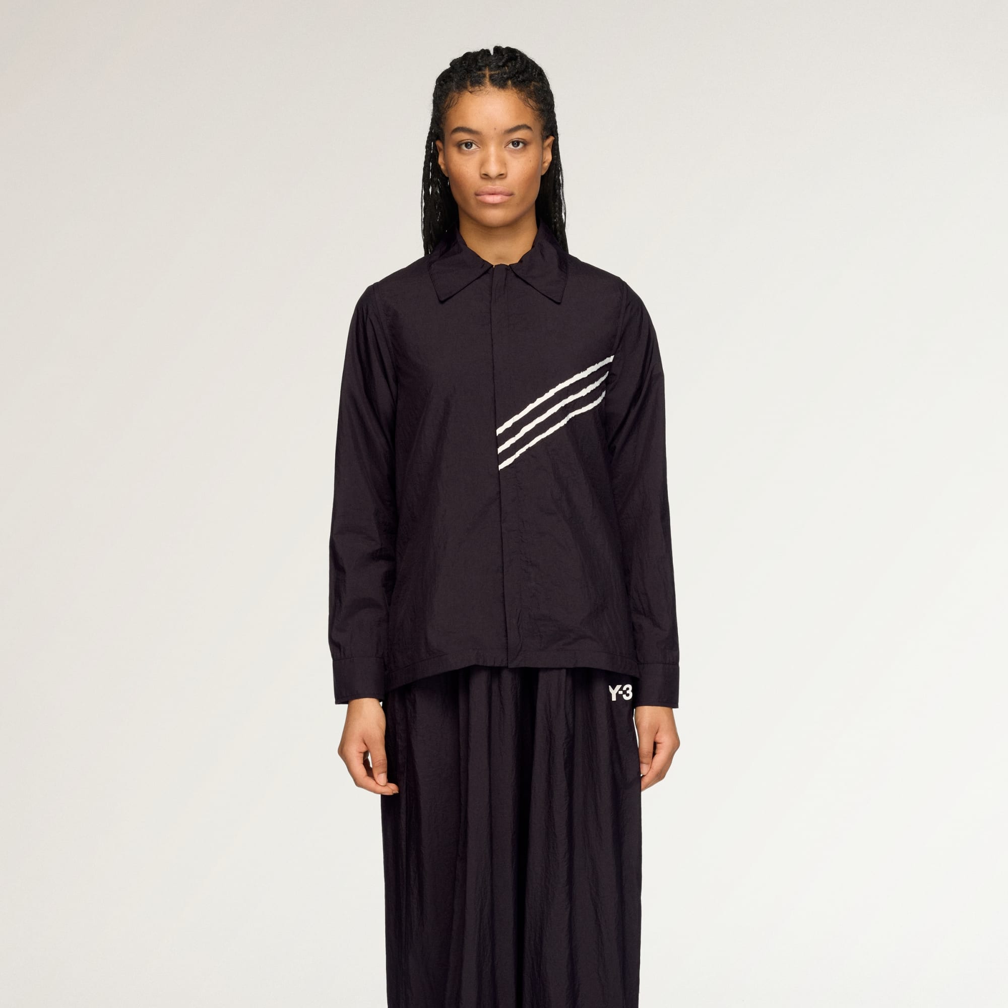 Mergulha no mundo da moda de luxo com a camisa Y-3 Raw Edge 3-Stripes. Inspirada na moda não convencional de Yohji Yamamoto e na história da adidas no vestuário de desporto. A camisola apresenta riscas irregulares em contraste no painel frontal esquerdo, acrescentando uma elegância subtil ao teu visual. Um logótipo de transferência térmica acetinado adorna a parte superior das costas, enquanto os botões de mola de plástico abertos e macios nos punhos completam o visual. Com a sua textura de tafetá, esta camisola oferece durabilidade e um toque macio, sendo ideal para passeios casuais.