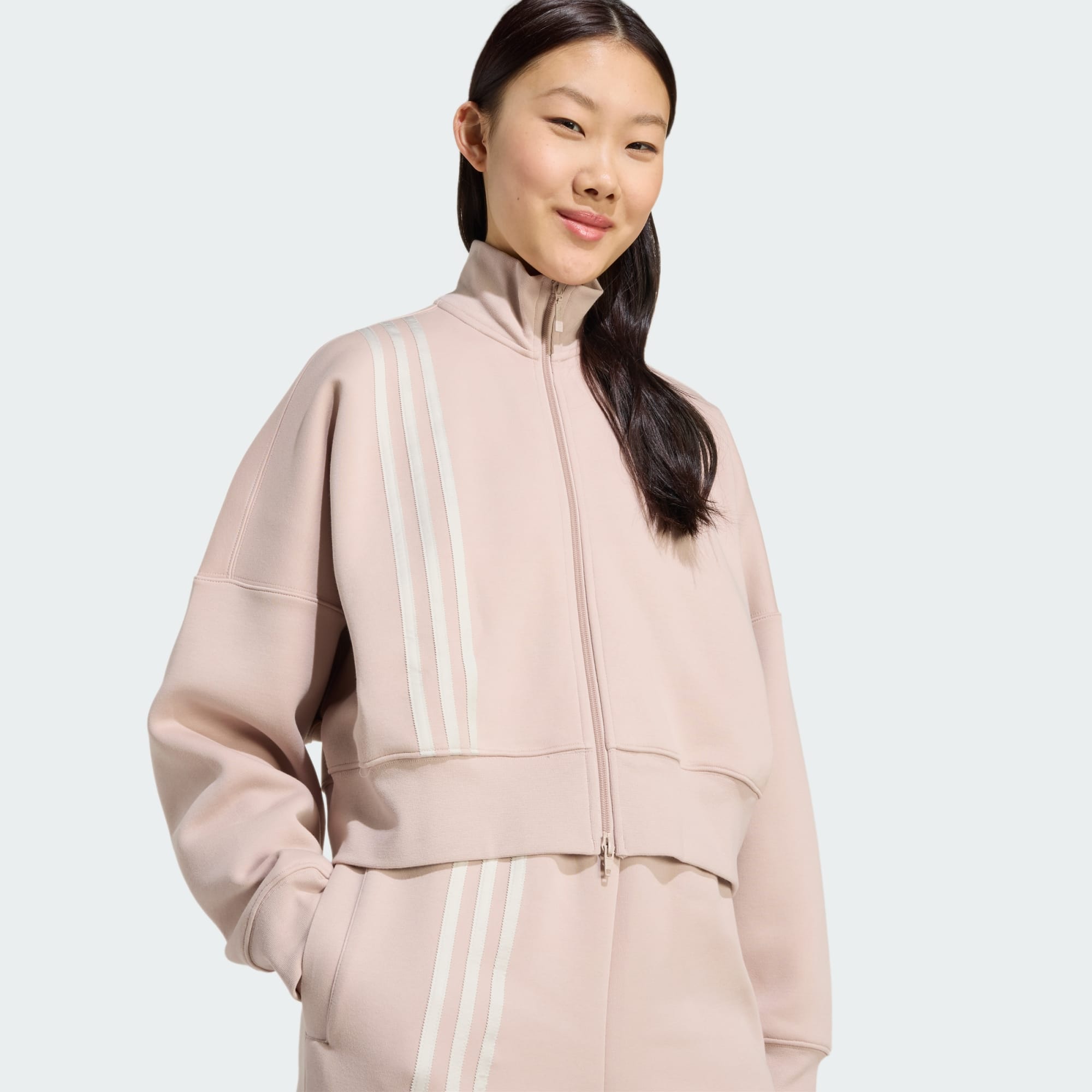 Quer estejas a relaxar ou em movimento, esta casaco da adidas dá-te uma vantagem. Tem um formato largo e oversize, que se sobrepõe facilmente e dá volume ao teu estilo diário. O canelado largo proporciona um contraste de textura com o tecido macio. Os bolsos mantêm os teus artigos essenciais por perto, para que estejas sempre a postos para o que se segue.