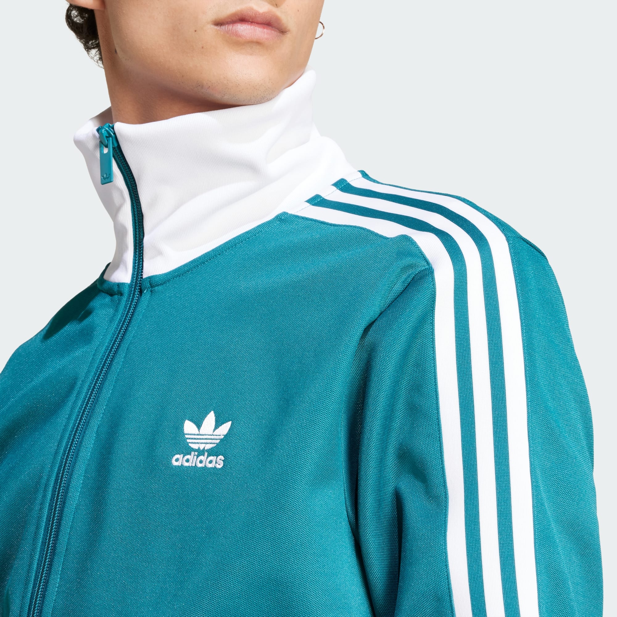 Às vezes a história acerta. Retirado diretamente dos arquivos da adidas, este casaco icónico oferece um look intemporal. Um logótipo do trevo bordado acrescenta um toque de elegância e a mistura de algodão extremamente macia torna-o ideal para o uso diário. Com um corte justo e um fecho integral, adiciona uma dose de atitude a qualquer conjunto. A nossa parte favorita: a gola alta para um toque de alfaiataria. 70% deste produto, no mínimo, é uma combinação de materiais reciclados e renováveis.