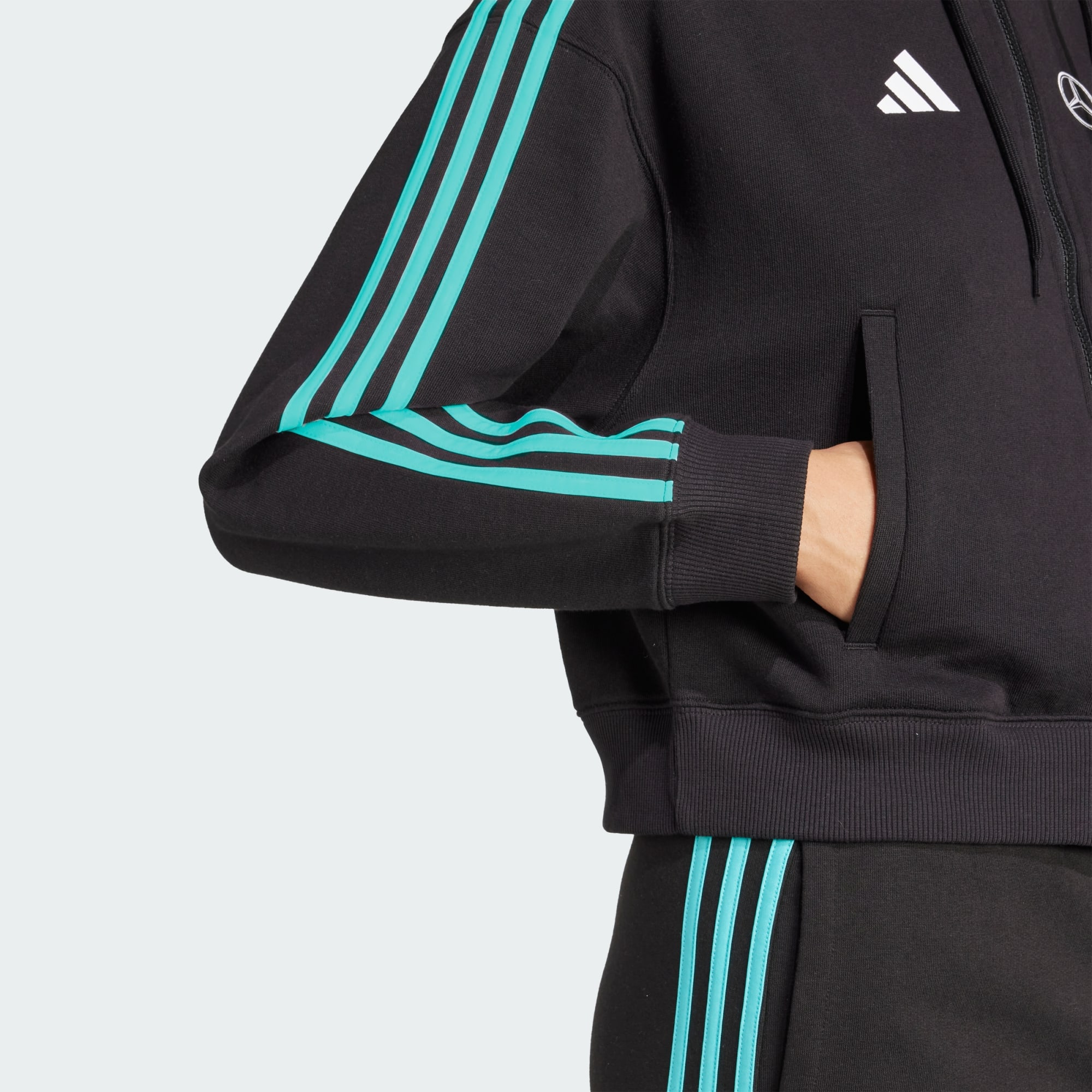 Mantém-te confortável e apoia a Mercedes-AMG Petronas Formula One Team com este casaco com capuz da adidas Motorsports. Tem corte largo e foi feito em tecido totalmente de algodão suave ao toque. O logótipo da Mercedes-AMG Petronas Formula One Team no peito confere autenticidade ao look.