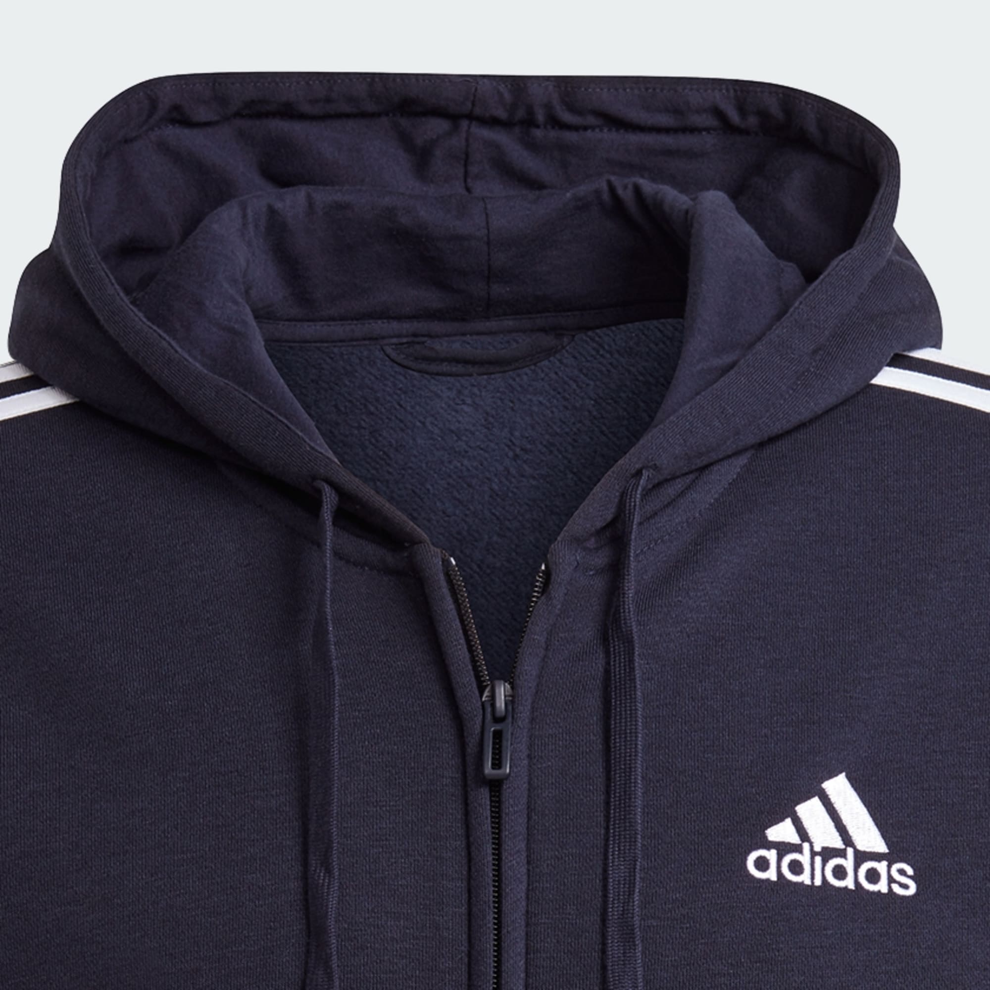 Casaco com capuz em fleece e fecho integral Essentials com as 3 Riscas