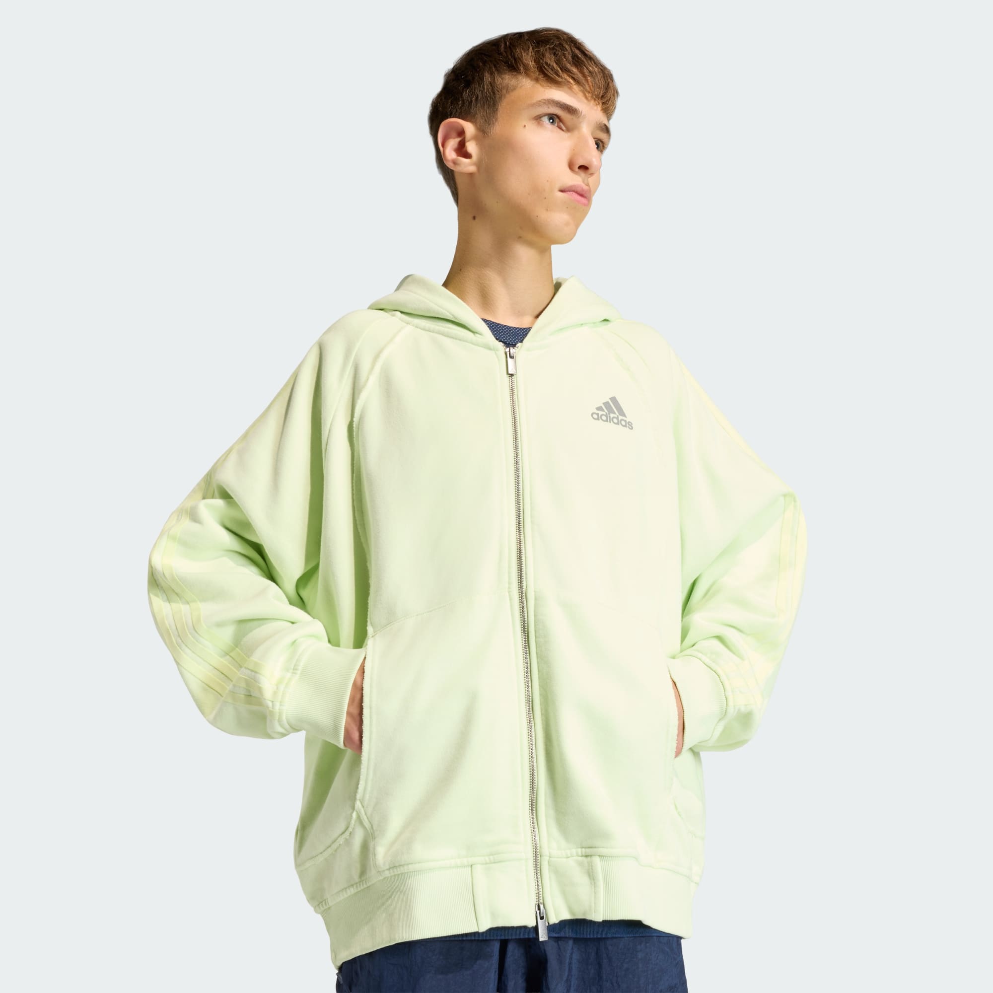 Nesta temporada, o espírito ousado do futebol funde-se com o ADN inconfundível da Adilenium através de uma reimaginação das linhas Teamgeist: um design icónico dos arquivo que revolucionou o jogo. Este casaco com capuz realça a linha de corte com um detalhe de costura com borda inacabada, que se destaca no tecido de efeito lavado. Termina com um emblema bordado e um fecho metálico.