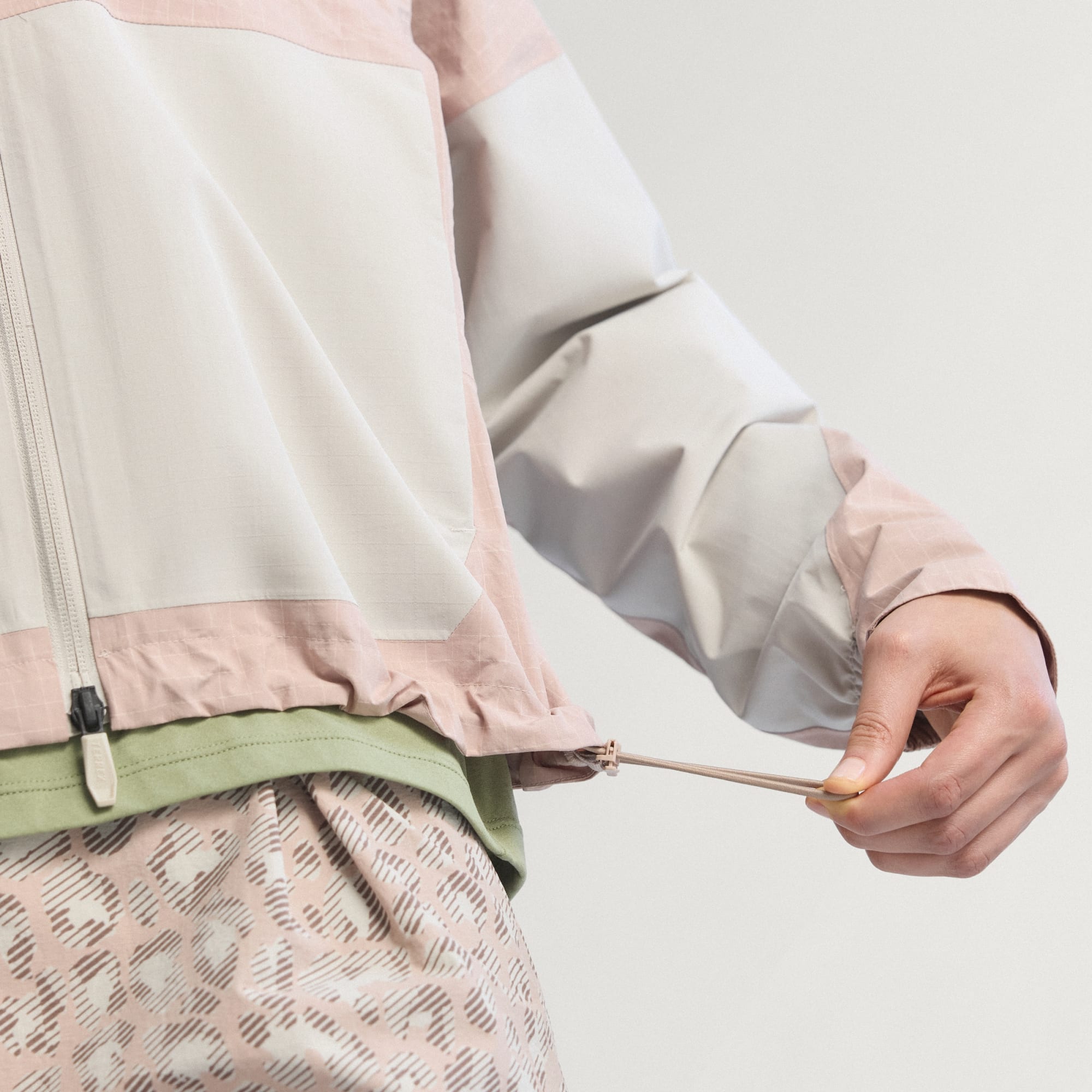 - Fecho de correr, decote quadrado, capuz ajustável