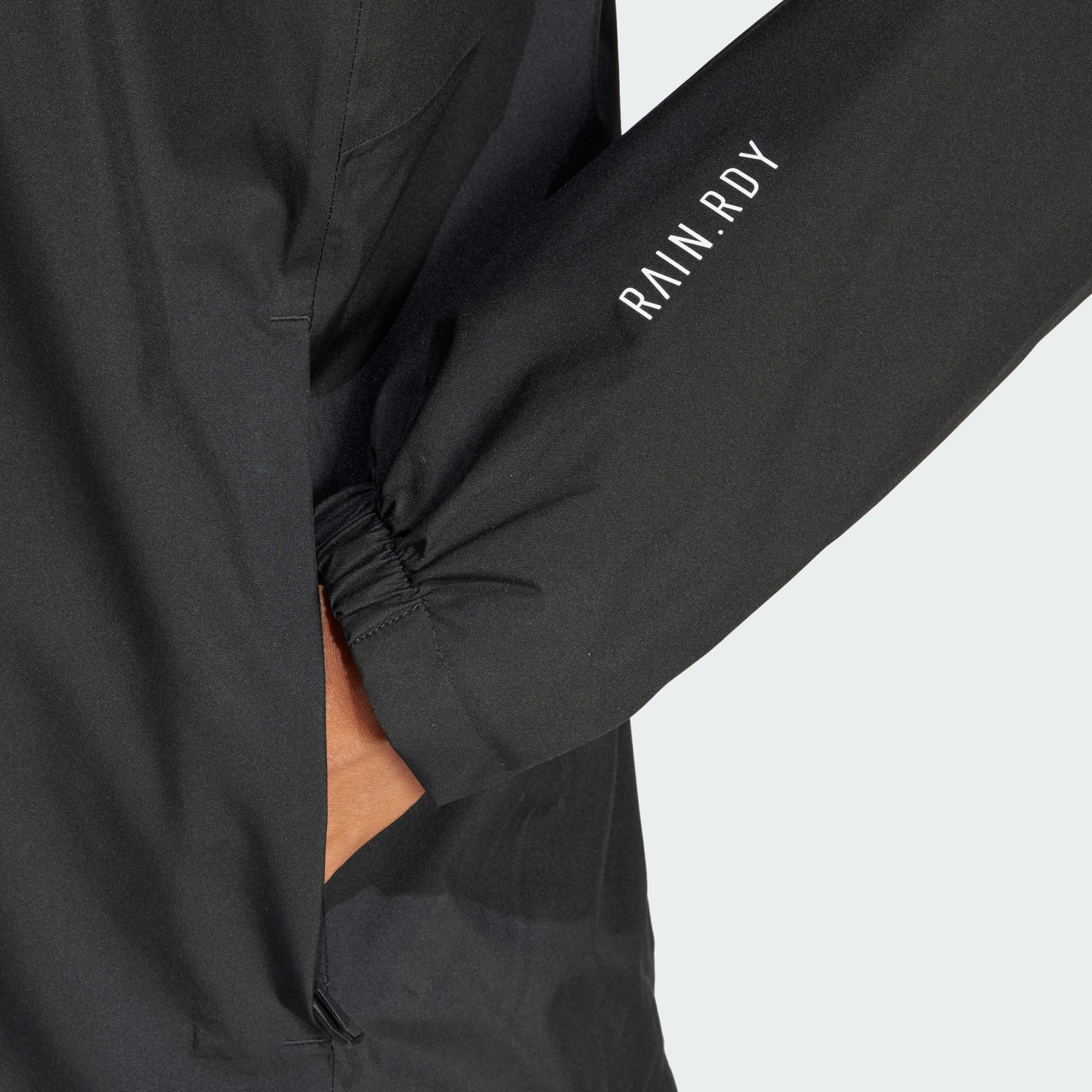 adidas RAIN.RDY utiliza impermeabilidade avançada para afastar a chuva do teu corpo, permitindo-te manter a concentração sob a intempérie.