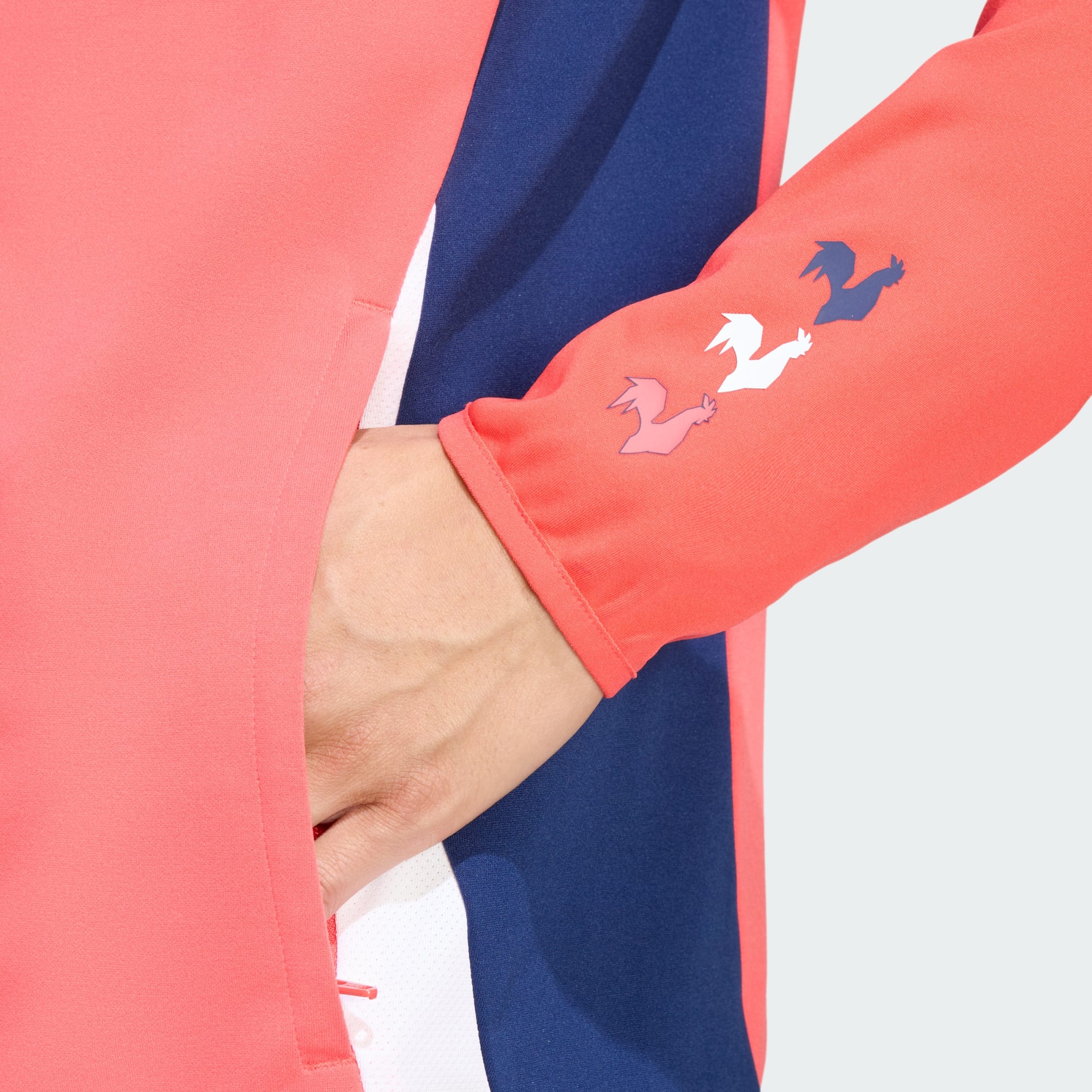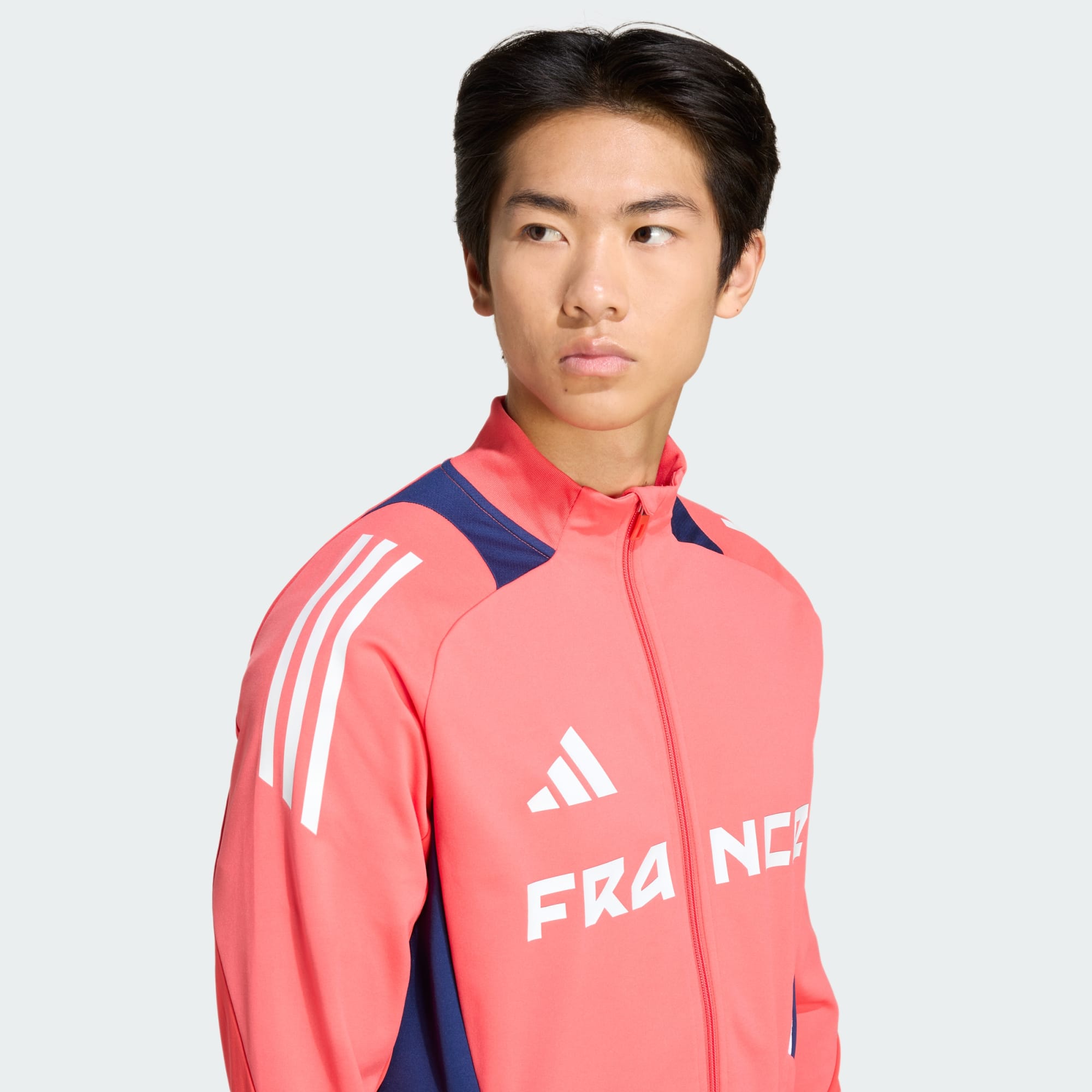 Abraça o espírito do atletismo francês com o casaco de treino France, concebido para quem procura estilo e desempenho no vestuário de desporto. O casaco, com um corte justo para uma silhueta aerodinâmica, apresenta uma gola subida para um toque elegante. Graças ao fecho integral à frente, oferece facilidade ao vestir e despir durante as sessões de treino e aquecimento, enquanto os bolsos laterais com fecho proporcionam um local prático para guardares pequenos artigos. Em tecido piqué para um toque suave e respirável, é uma peça prática, seja para correr na pista ou na cidade. O design marcante inclui a inscrição France no peito e uma série de 3 galos no pulso, complementados pelo logótipo adidas e pelas 3 riscas. Concebido para o desempenho no dia a dia, este casaco celebra a energia do desporto e adapta-se ao teu estilo de vida ativo, para que te sintas confiante e confortável onde quer que o dia te leve.