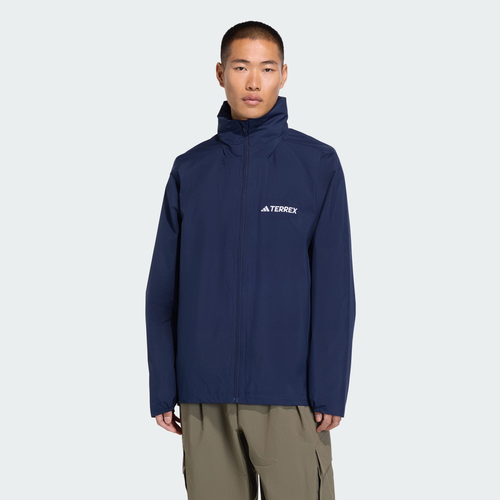 This is a great waterproof jacket. Made of strong and not to bulky material,which holds up well in wet and windy weather. Which you’d expected from terrex jackets. Love the colour,pack away hood and side zip pockets.