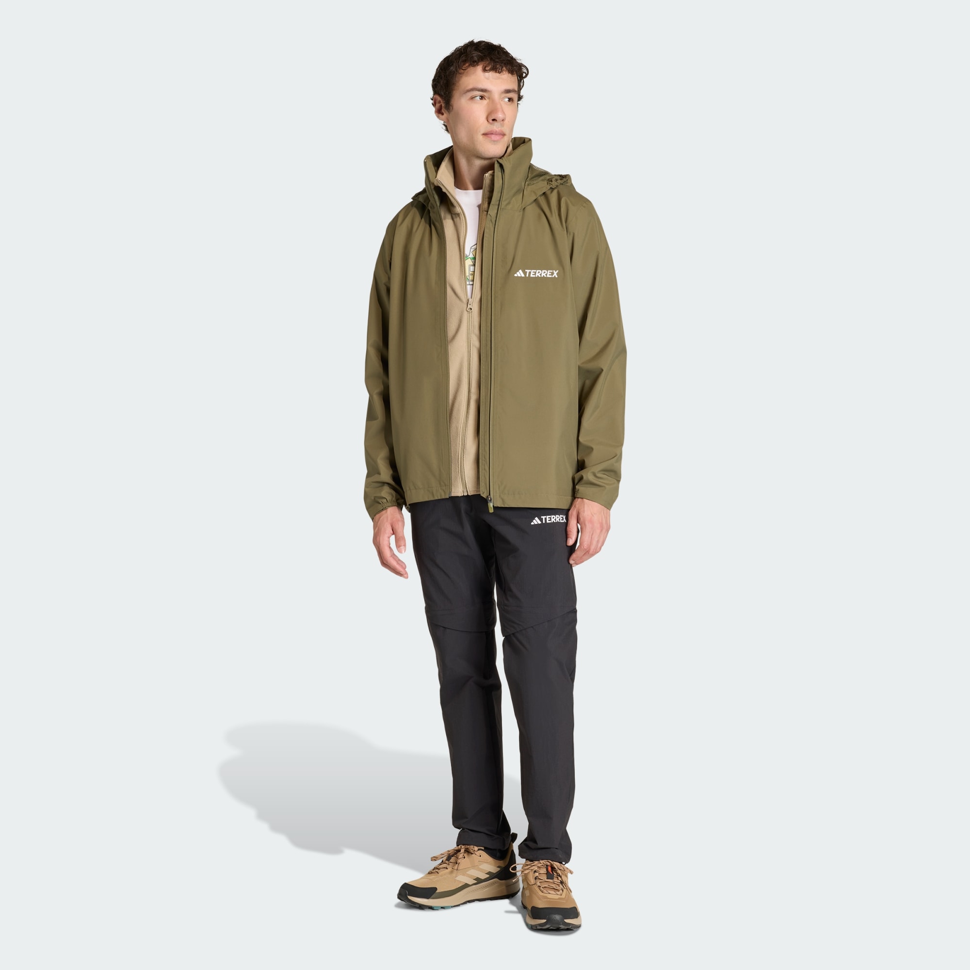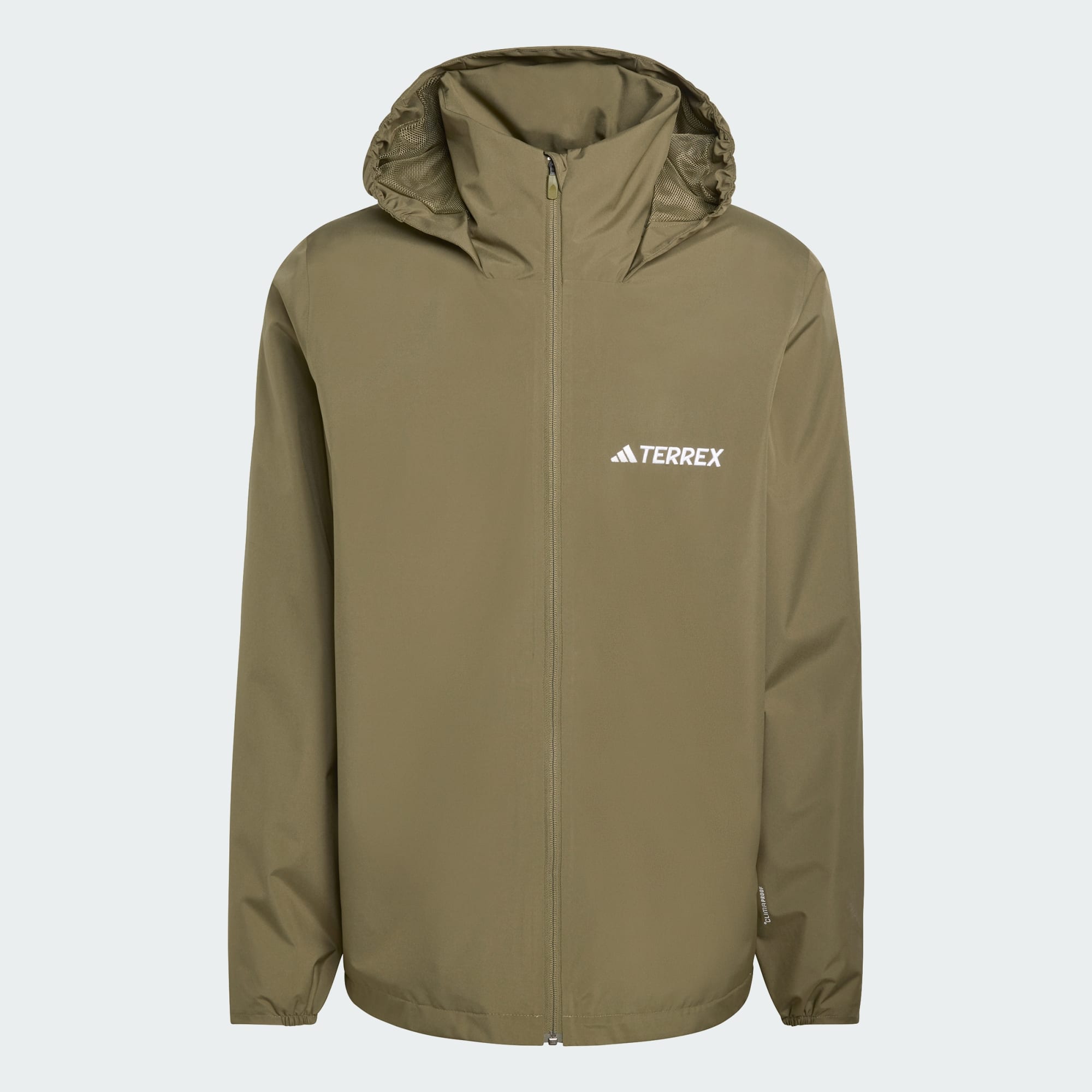 This is a great waterproof jacket. Made of strong and not to bulky material,which holds up well in wet and windy weather. Which you’d expected from terrex jackets. Love the colour,pack away hood and side zip pockets.