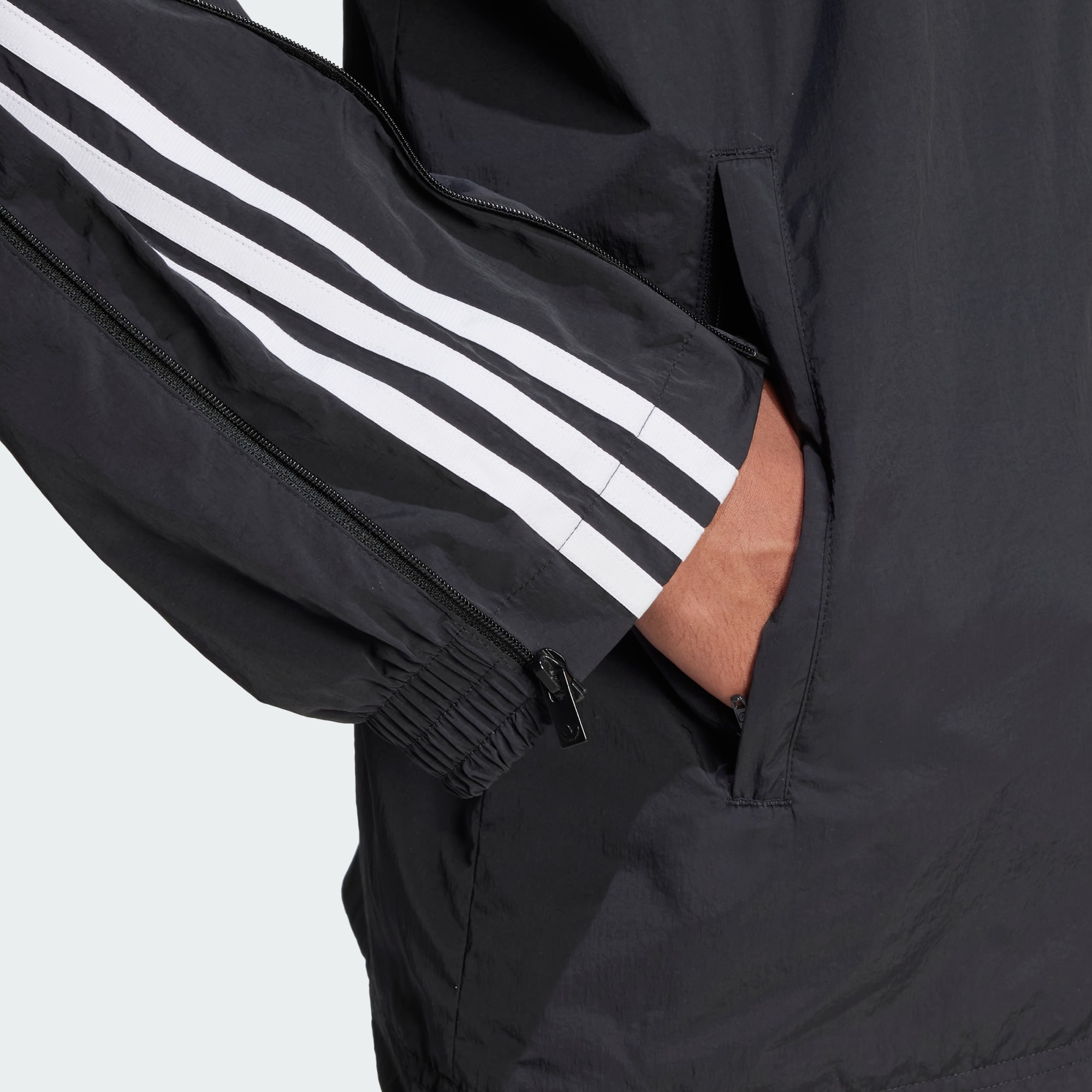 O conceito do novo lançamento Adilenium está por todo os lado, ultrapassando todos os limites, reimaginando o expectável e exprimindo-se livremente. E isso está claro no design deste casaco. Com o clássico fato de treino adidas Superstar, exagerámos o formato e acrescentámos fechos de correr onde normalmente não existem: nas mangas. Ocultos nas 3 riscas estão fechos de correr para abrir as mangas, jogar com o volume e adicionar um elemento de estilo intemporal. O cordão elástico na bainha permite-te abrir ou fechar a silhueta.