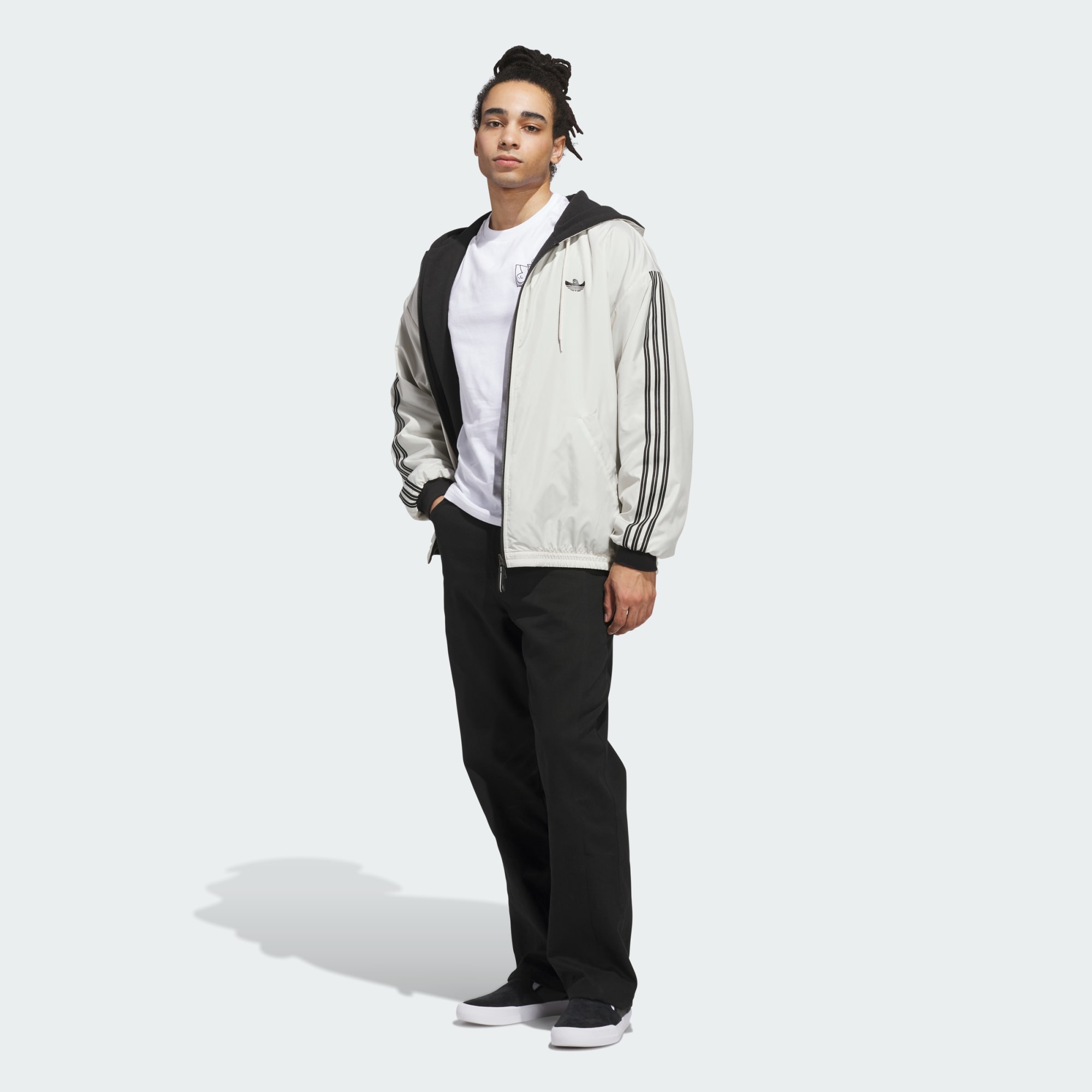 Com o dobro da criatividade, o casaco Shmoofoil Reversible Warmup apresenta uma construção com fecho integral totalmente reversível, um corte descontraído moderno e o grafismo de um trevo personalizado concebido pelo ícone do skateboarding da adidas, Mark Gonzales. Este casaco foi fabricado com o sistema de ajuste UNITEFIT para todos os géneros que foi criado a pensar numa ampla variedade de tamanhos, géneros e formas.