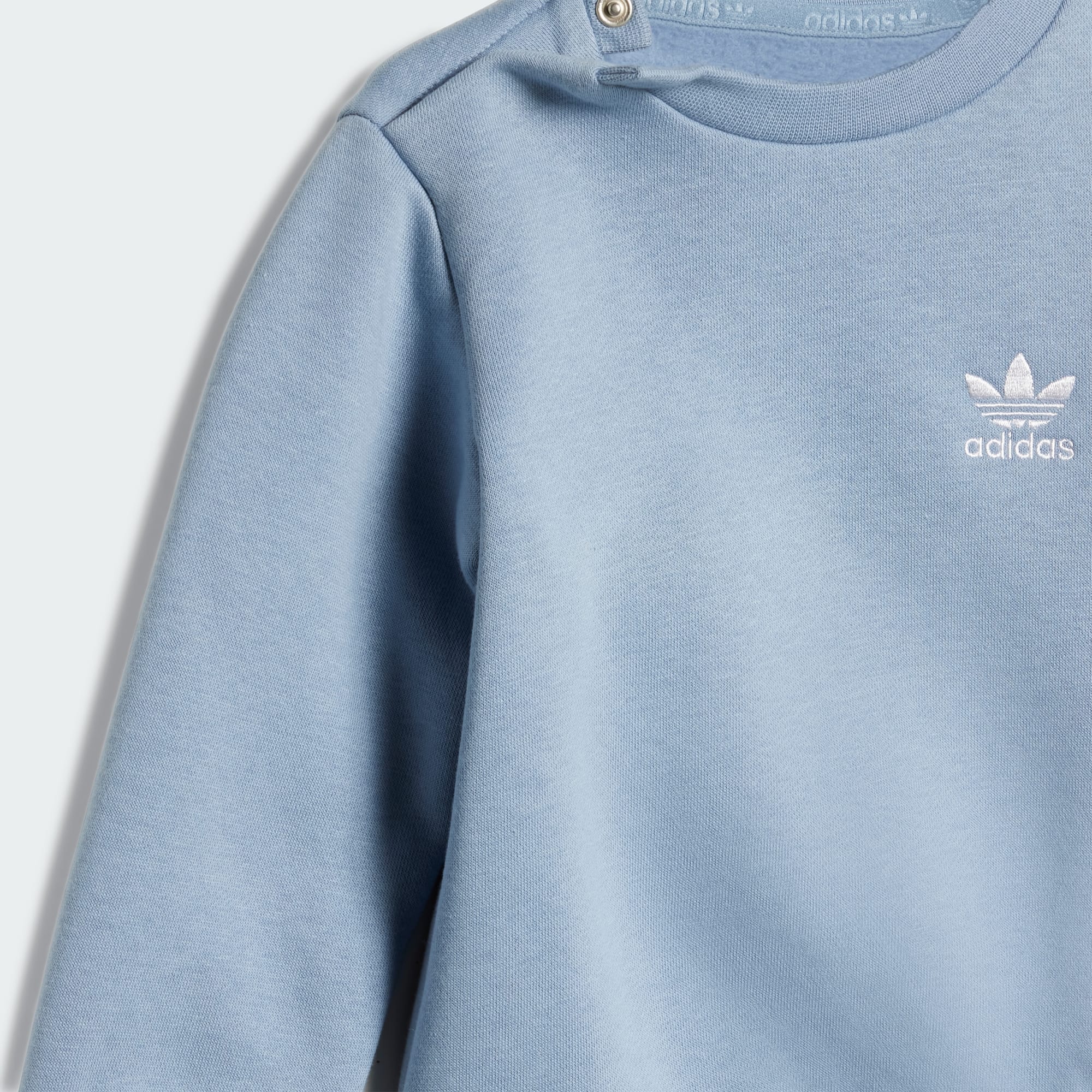 Este conjunto para bebé envolve o teu pequenino em conforto e suavidade da cabeça aos pés. Os punhos canelados retêm o calor, ao passo que o fleece de material reciclado com corte largo o envolve em suavidade. Logótipos do trevo contrastantes na sweatshirt e nas calças prestam tributo ao legado adidas, unindo uma nova geração ao legado do desporto e do estilo. O algodão deste produto foi obtido através da Better Cotton. Better Cotton é obtido através de um modelo de cadeia de responsabilidade denominado “equilíbrio de massa”. Isto significa que Better Cotton não é fisicamente rastreável nos produtos finais. Sabe mais em https://bettercotton.org/who-we-are/our-logo/