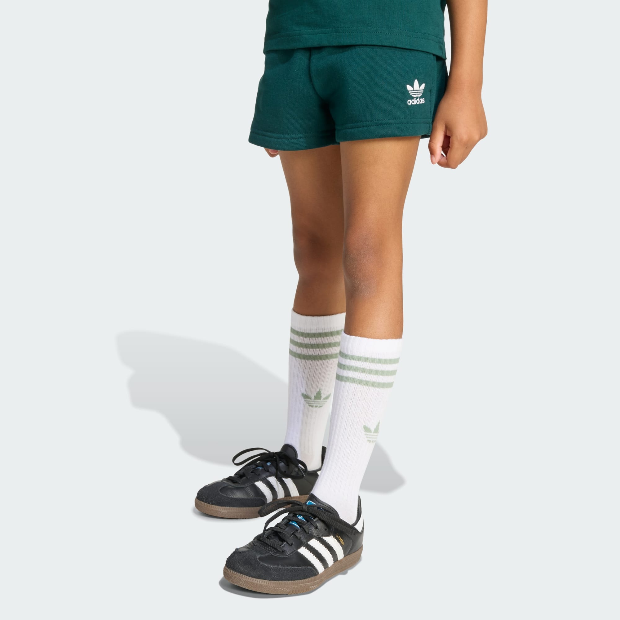 Este conjunto de calções e t-shirt da adidas vai deixar as crianças prontas para tudo o que o dia lhes reservar. O look monocromático realça o logótipo do trevo em ambas as peças. A construção totalmente em algodão e a cintura com cordão nos calções tornam este conjunto confortável e fácil de usar.