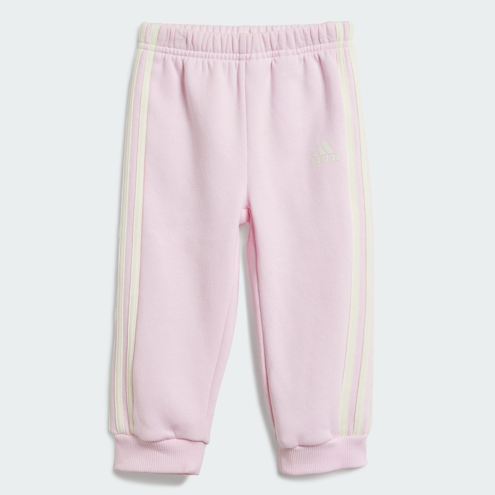 Este conjunto adidas para bebé é obrigatório no guarda-roupa de qualquer pequenino. A confortável mistura de algodão e os punhos canelados tornam-no perfeito para todas as brincadeiras, ao passo que as 3 riscas adicionam um toque desportivo. Pelo menos 70% deste produto consiste numa mistura de materiais reciclados e renováveis.