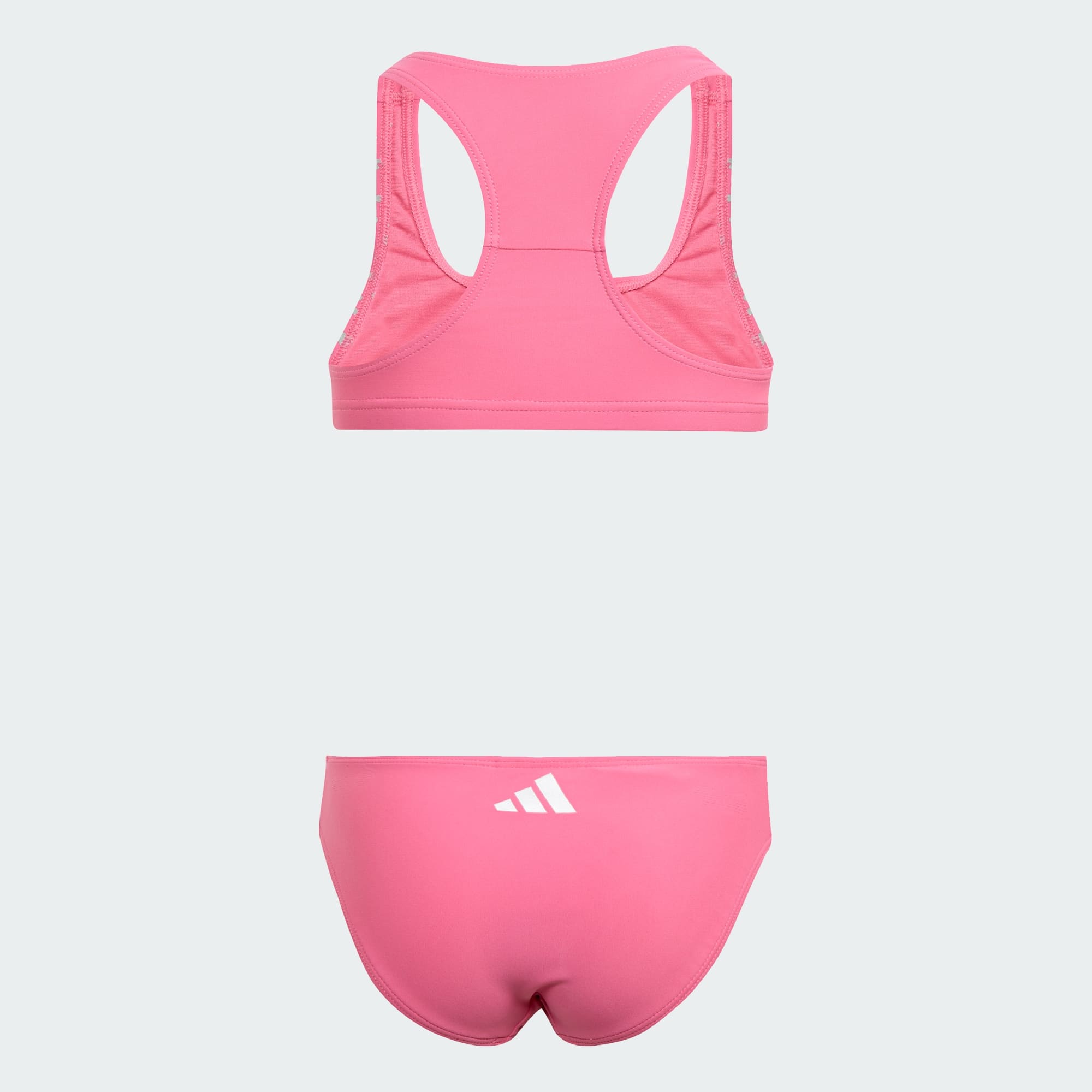 Este biquíni para criança da adidas permite ao teu jovem nadador exprimir a sua individualidade dentro e fora da piscina. O design racerback permite uma gama completa de movimentos. Um estampado prateado e o logótipo 3 Bar brilhante adicionam brilho.