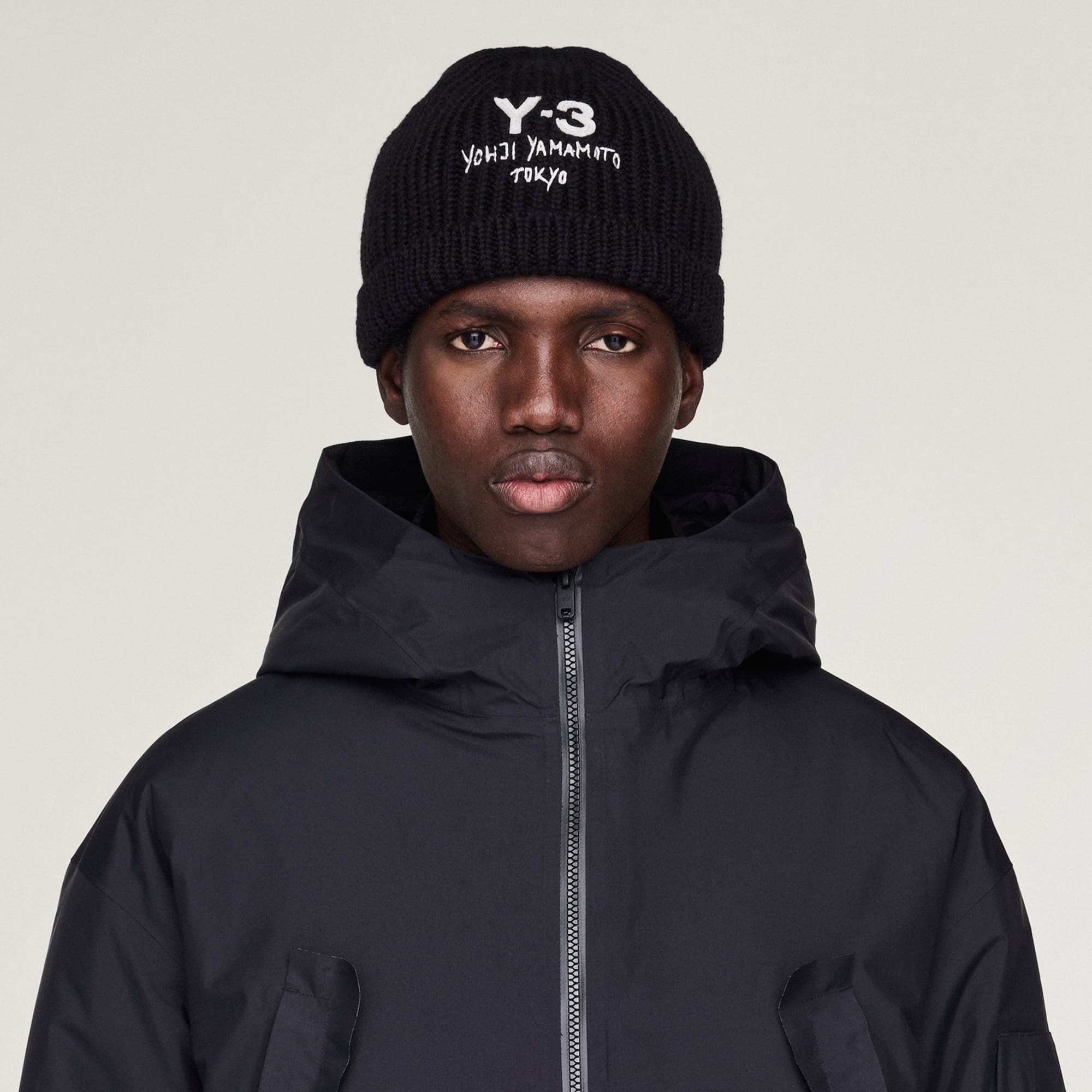 Um gorro de malha Y-3 com um look clássico.