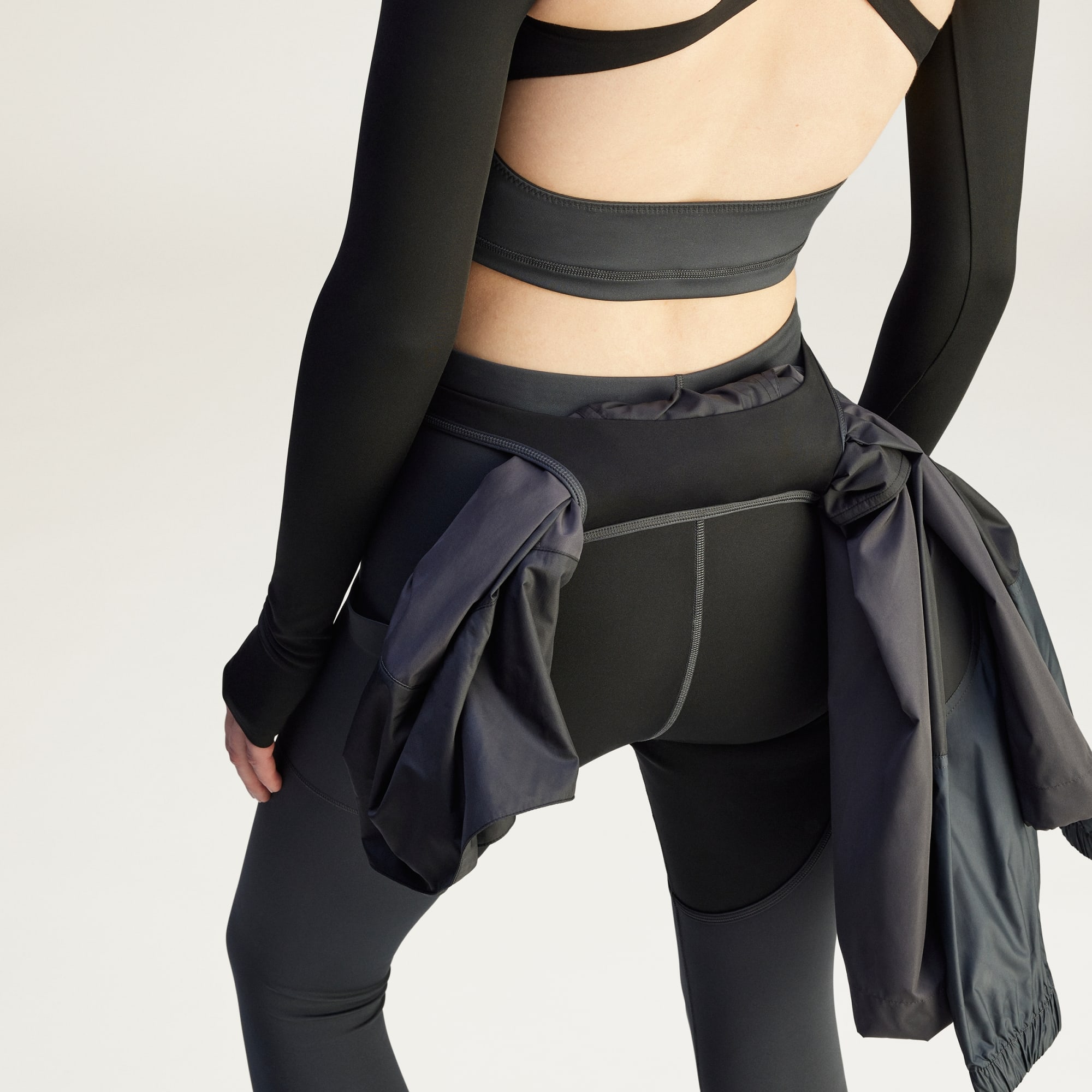 Uma construção inovadora, o cós em camadas permite-te pendurar convenientemente algumas coisas essenciais para as manter à mão — como chaves ou uma garrafa de água.