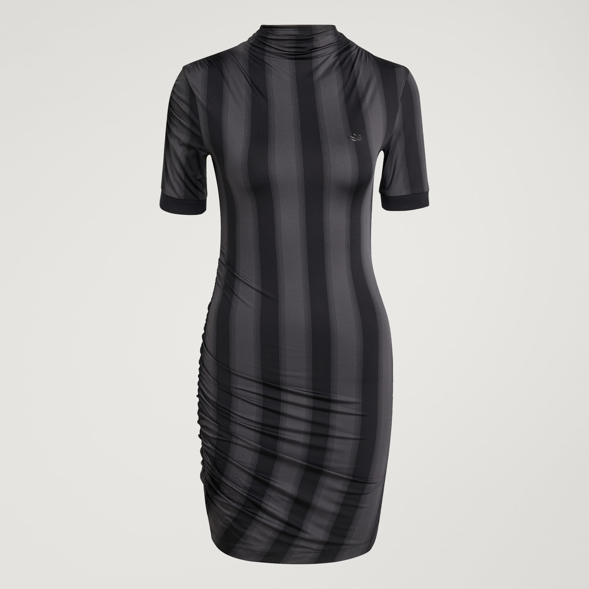 Este minivestido adidas vai aos arquivos da marca dos anos 90 e reimagina o estilo desportivo da época para os dias de hoje. Um ajuste envolvente combina com uma gola alta e um franzido chique lateral. As riscas e o icónico logótipo do trevo mantêm as raízes desportivas, mas pronta para sair com estilo.
