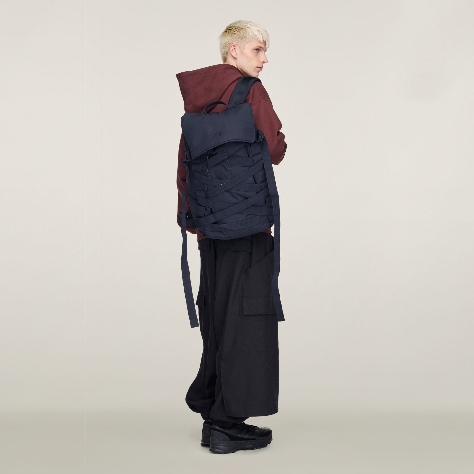 Uma mochila Y-3 com um design de ajuste único e utilitário.