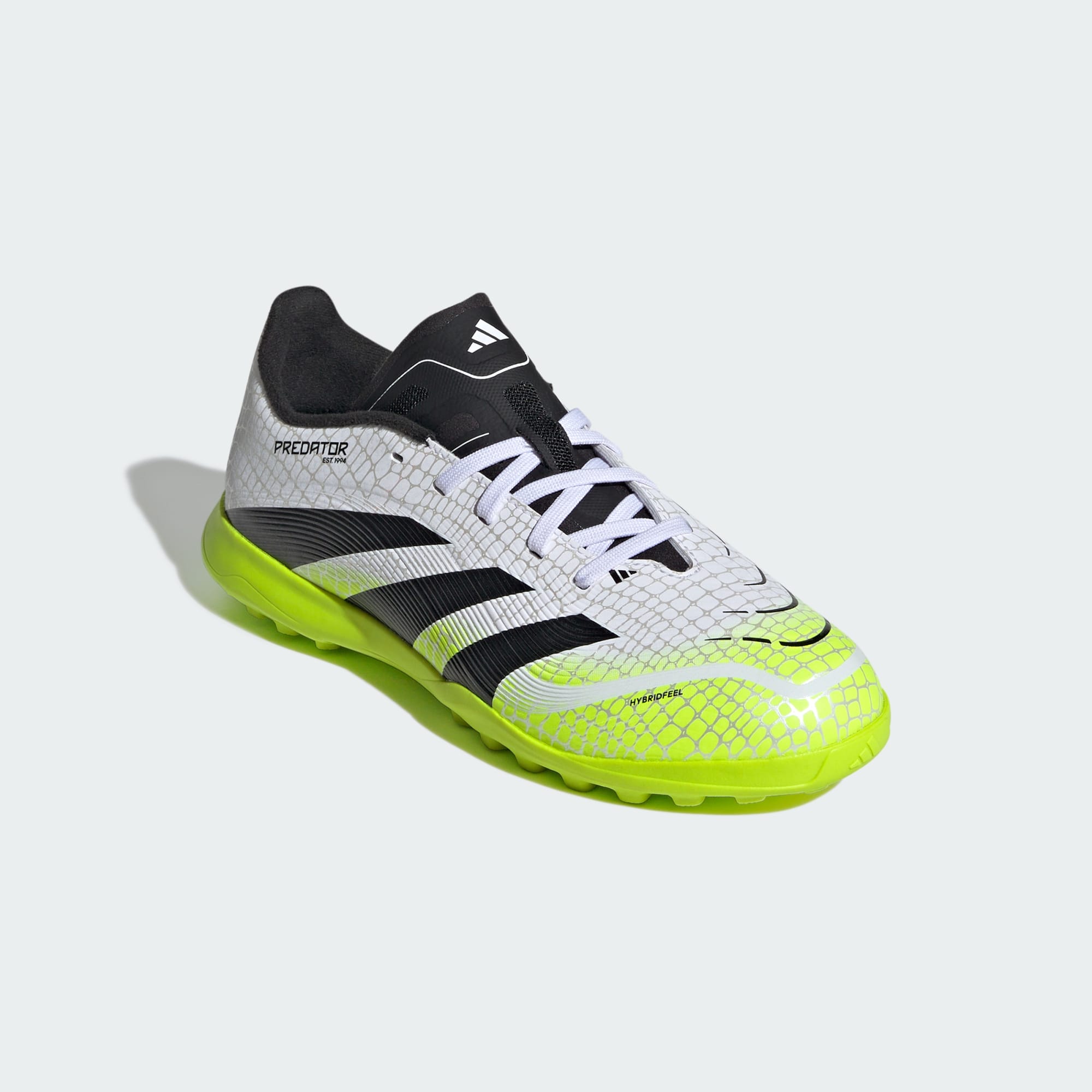Descobre a diferença entre desejar marcar e saber que o vais fazer com botas adidas Predator feitas para os goleadores. Estas botas League em tamanho júnior têm um topo Hybridfeel que incorpora uma textura 3D integral, língua dobrada e elementos Strikescale aderentes para te ajudar a controlar a bola durante os remates. Uma sola de borracha com cravos mantém-te estável nos campos de relva artificial.