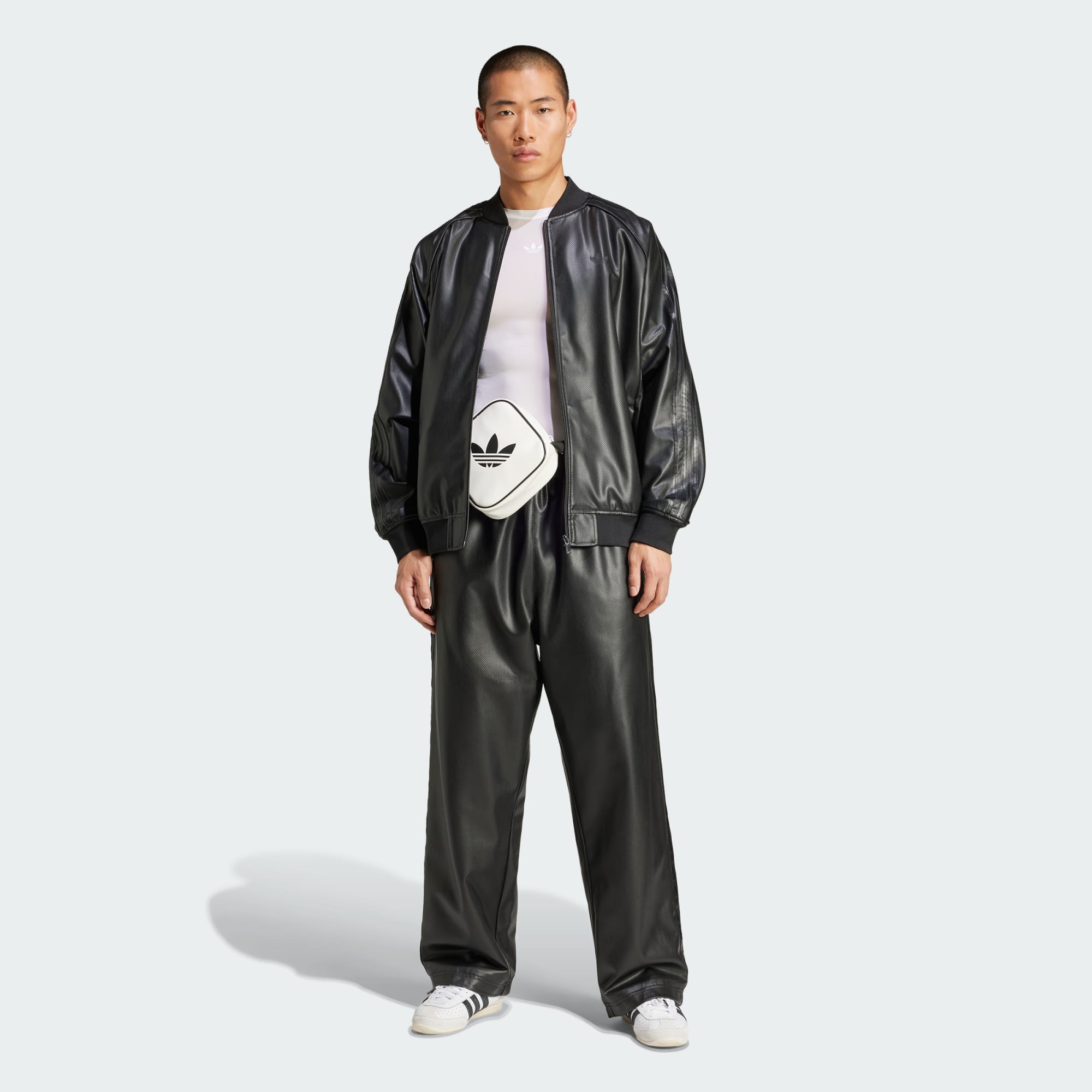 Slip into these adidas track pants and experience the comfort that comes from a design that's been carefully considered and expertly crafted. Their loose shape gives them a laid-back look and feel that's perfect for easygoing days, while the comfortably lined faux leather fabric gives them sleek elegance. Pair them with a matching track jacket to create a unified look that's effortlessly stylish.